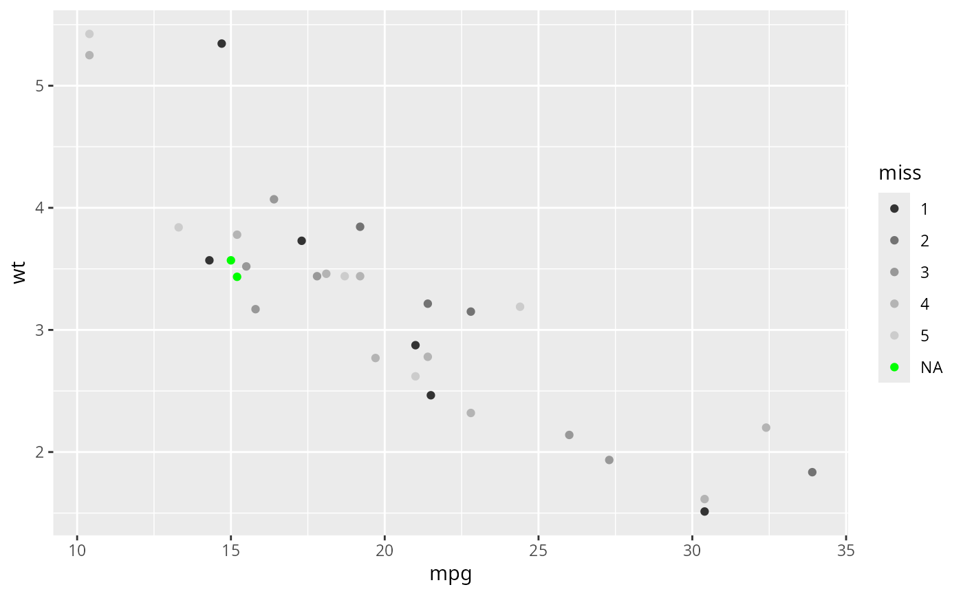 miss <- factor(sample(c(NA, 1:5), nrow(mtcars), replace = TRUE))