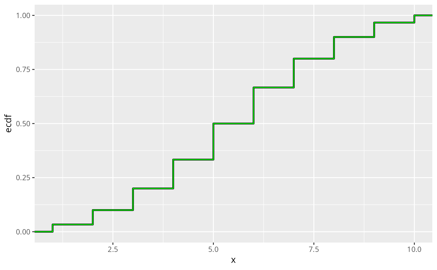 stat_ecdf() understands the following aesthetics. Required aesthetics are displayed in bold and defaults are displayed for optional aesthetics: