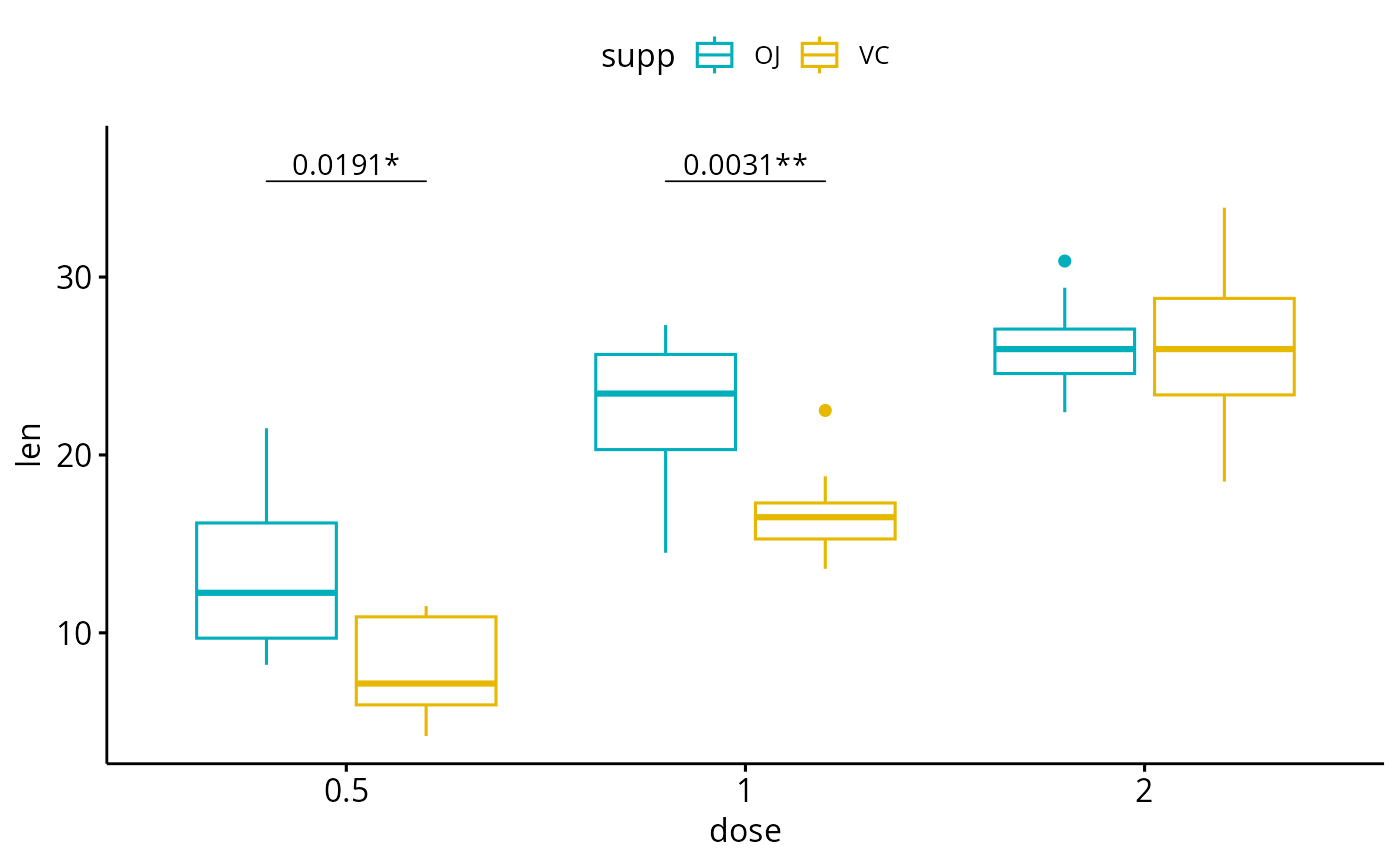 method = "t_test", label = "{p.adj.format}{p.adj.signif}",
