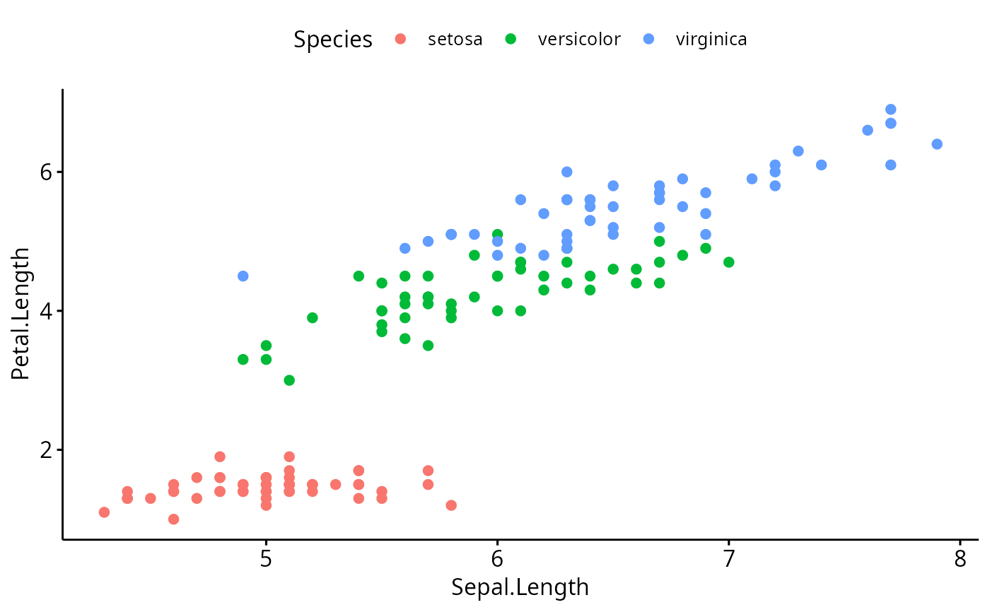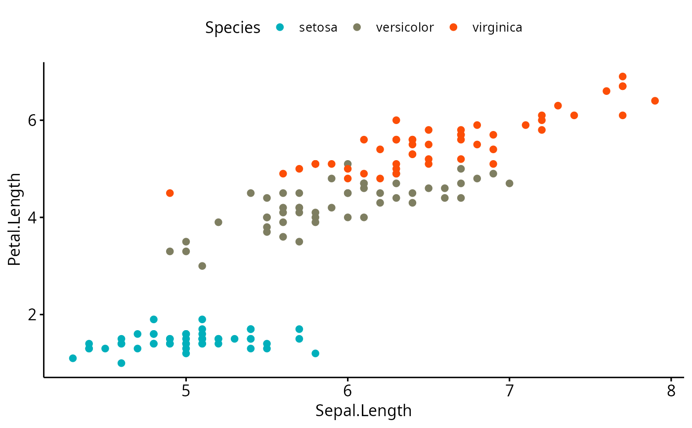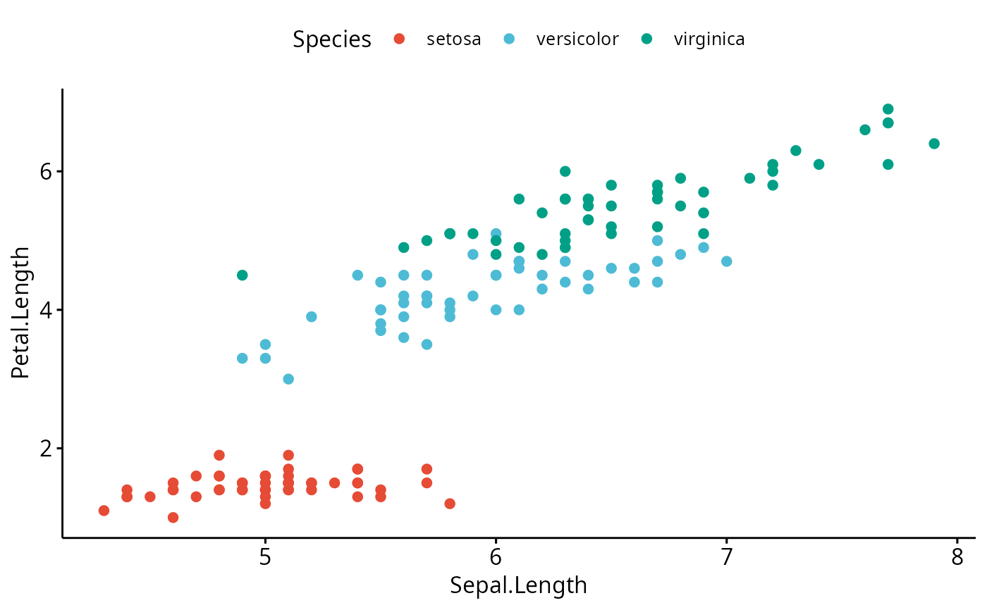 ggscatter(iris, x = "Sepal.Length", y = "Petal.Length",