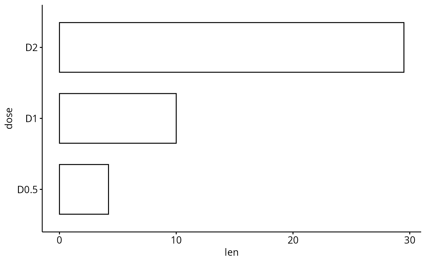 ggbarplot(df, "dose", "len", orientation = "horiz")