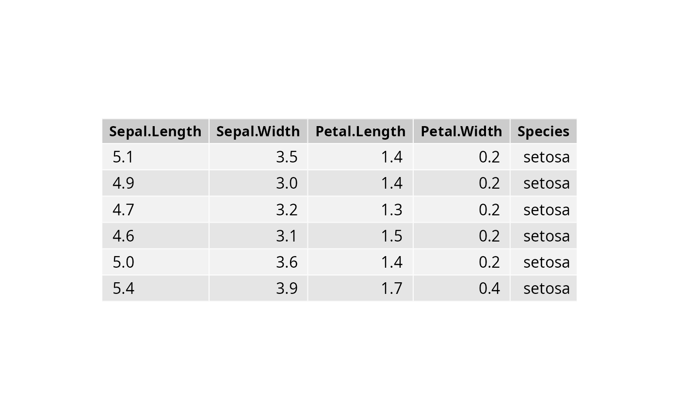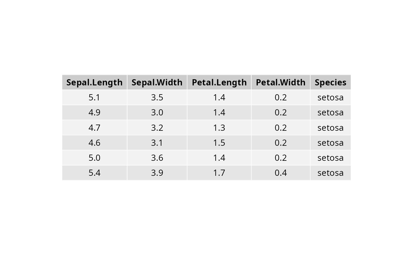 tab <- ggtexttable(head(iris), theme = ttheme("light"))