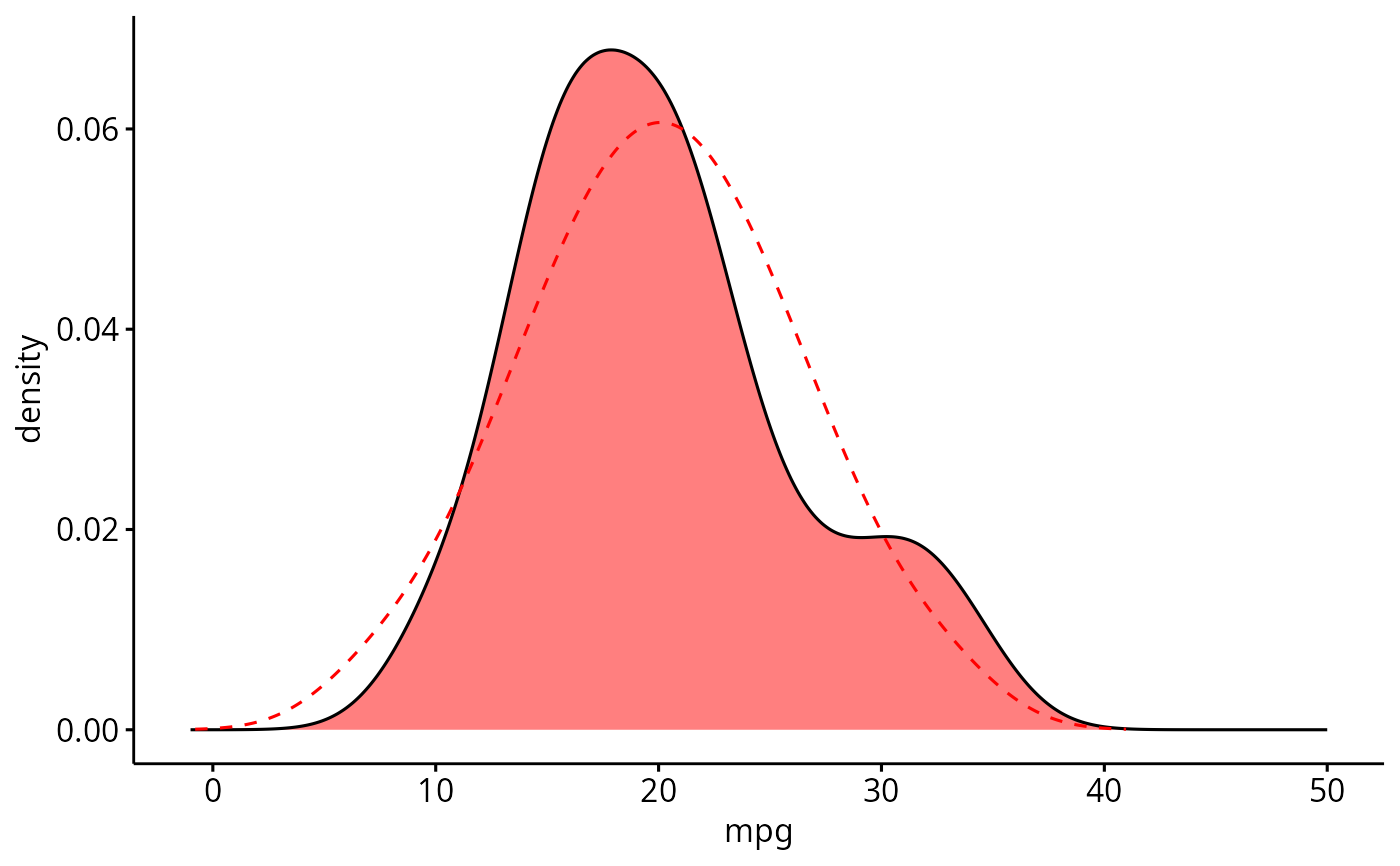 stat_overlay_normal_density(color = "red", linetype = "dashed")