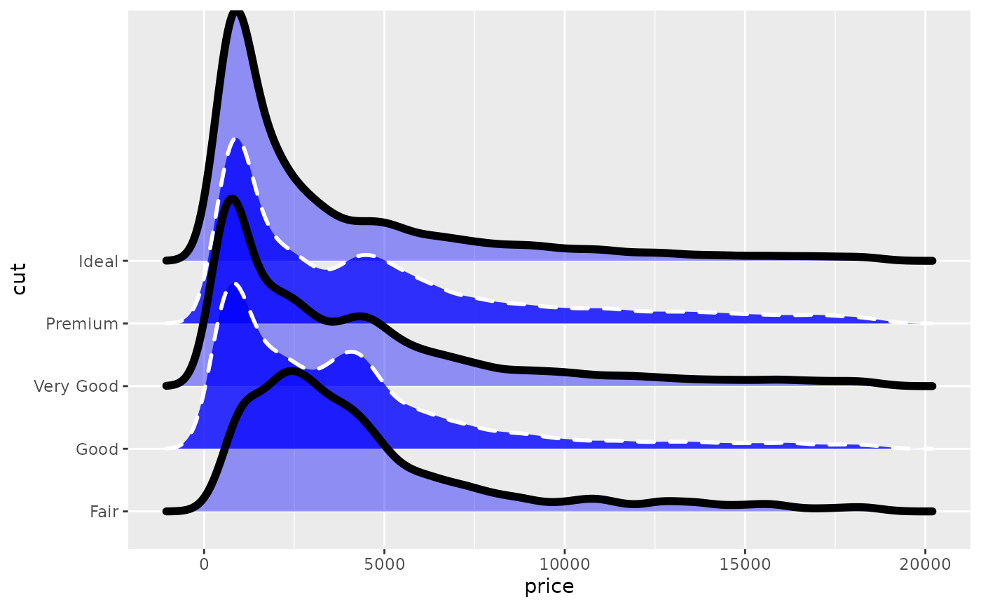 ggplot(diamonds, aes(x = price, y = cut, fill = cut)) +