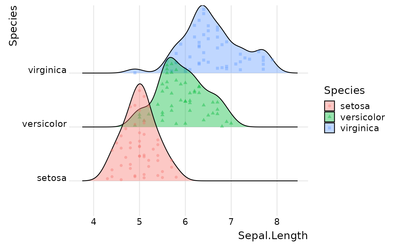ggplot(iris, aes(x=Sepal.Length, y=Species, fill = Species)) +