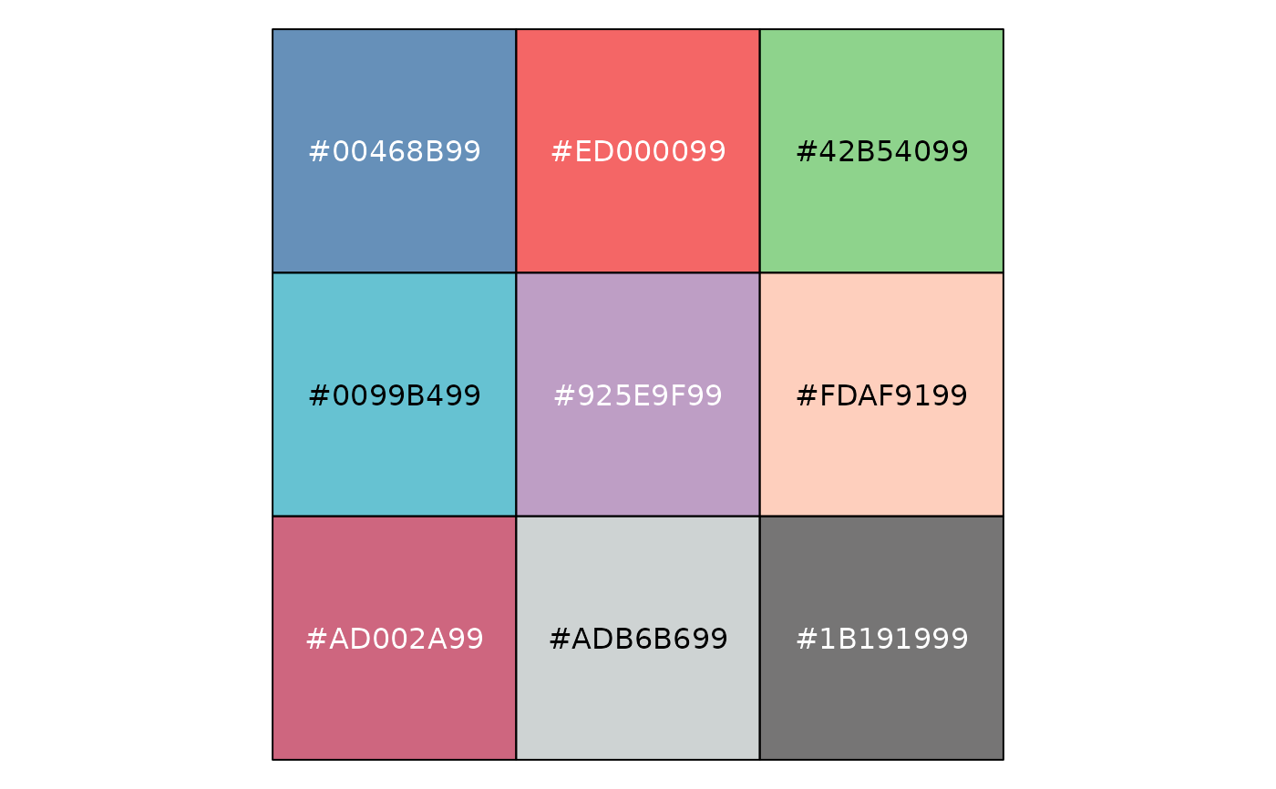 show_col(pal_lancet("lanonc", alpha = 0.6)(9))