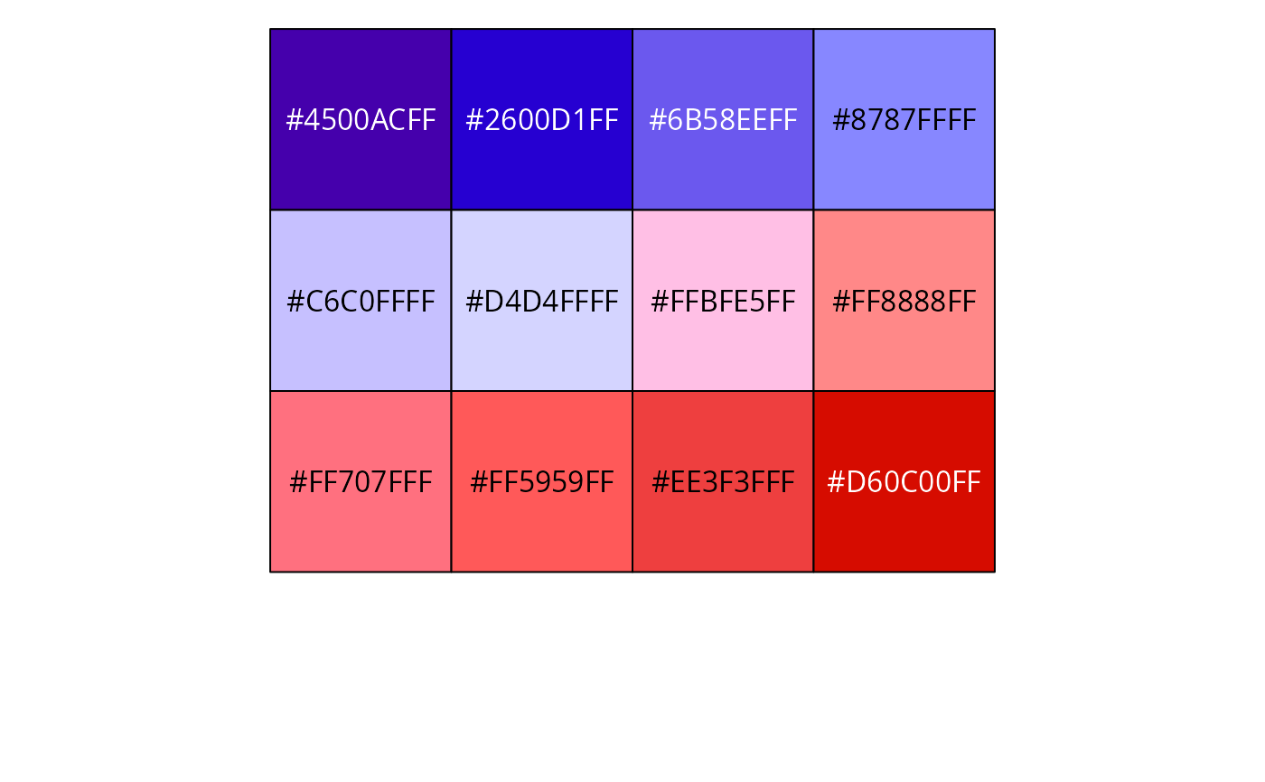 pal_gsea(palette = c("default"), n = 12, alpha = 1, reverse = FALSE)Palette type.
