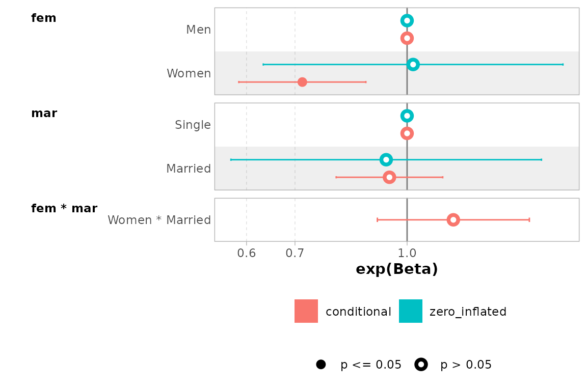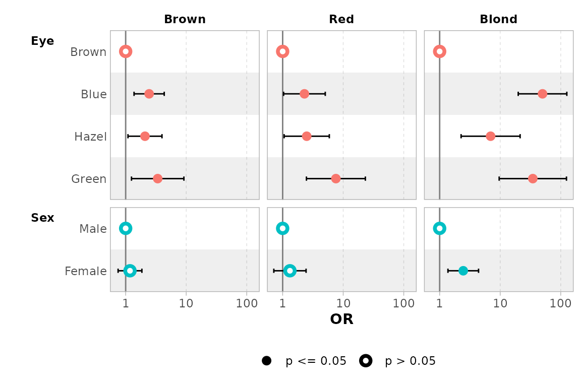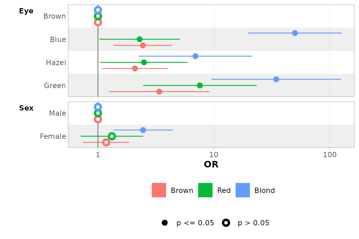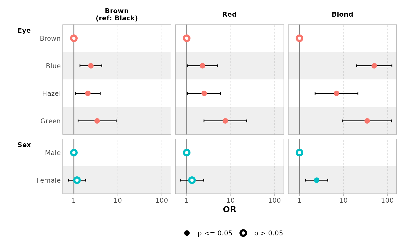 exponentiate = TRUE. Note that a logarithmic scale will be