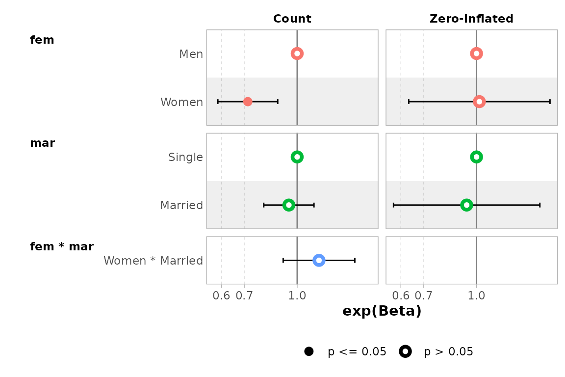 By default, for categorical variables using treatment and sum contrasts, reference rows will be added and displayed on the graph.