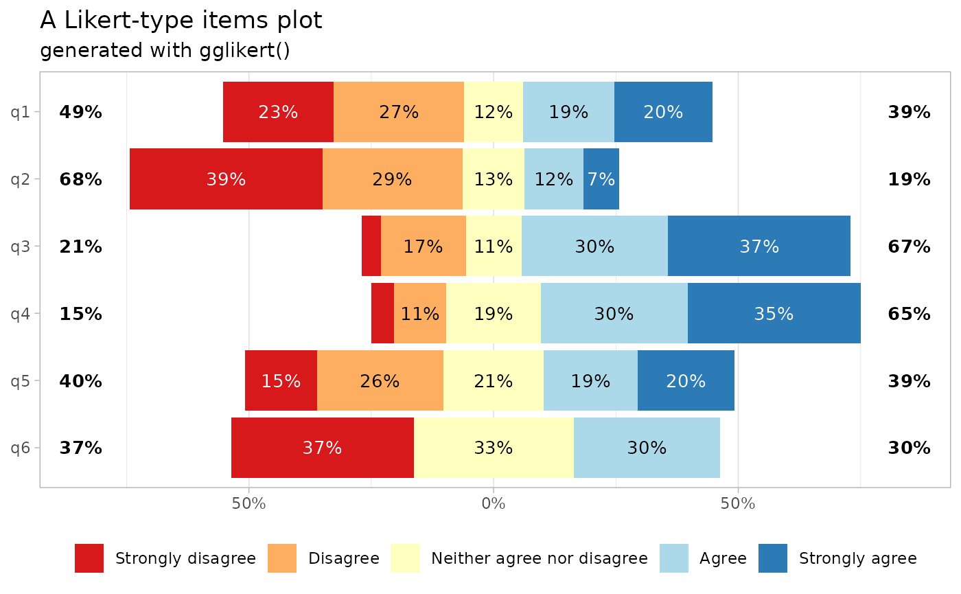 ggtitle("A Likert-type items plot", subtitle = "generated with gglikert()") +