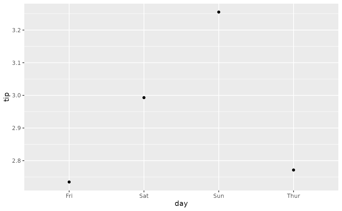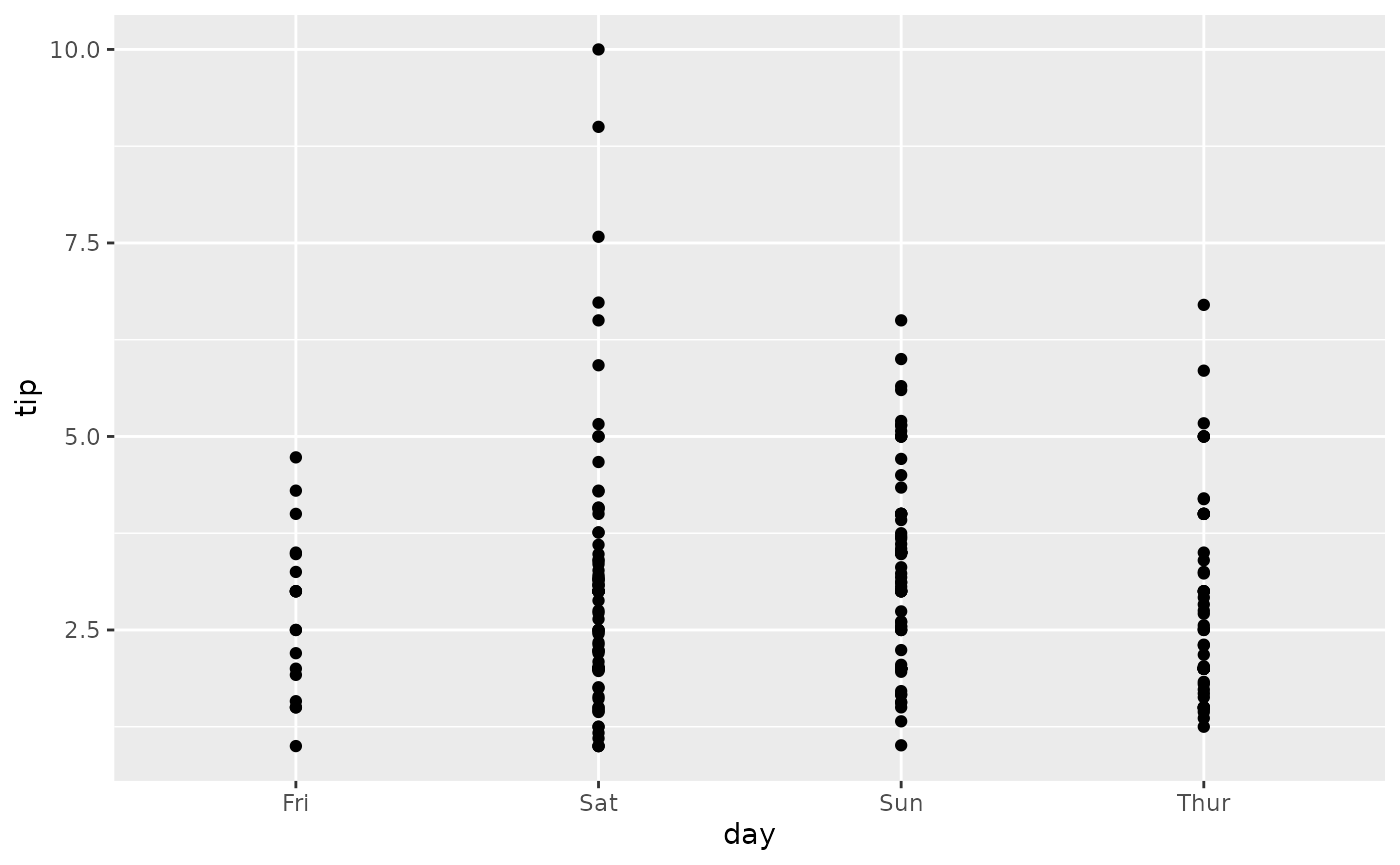 Let’s take an example. The following plot shows all tips received according to the day of the week.