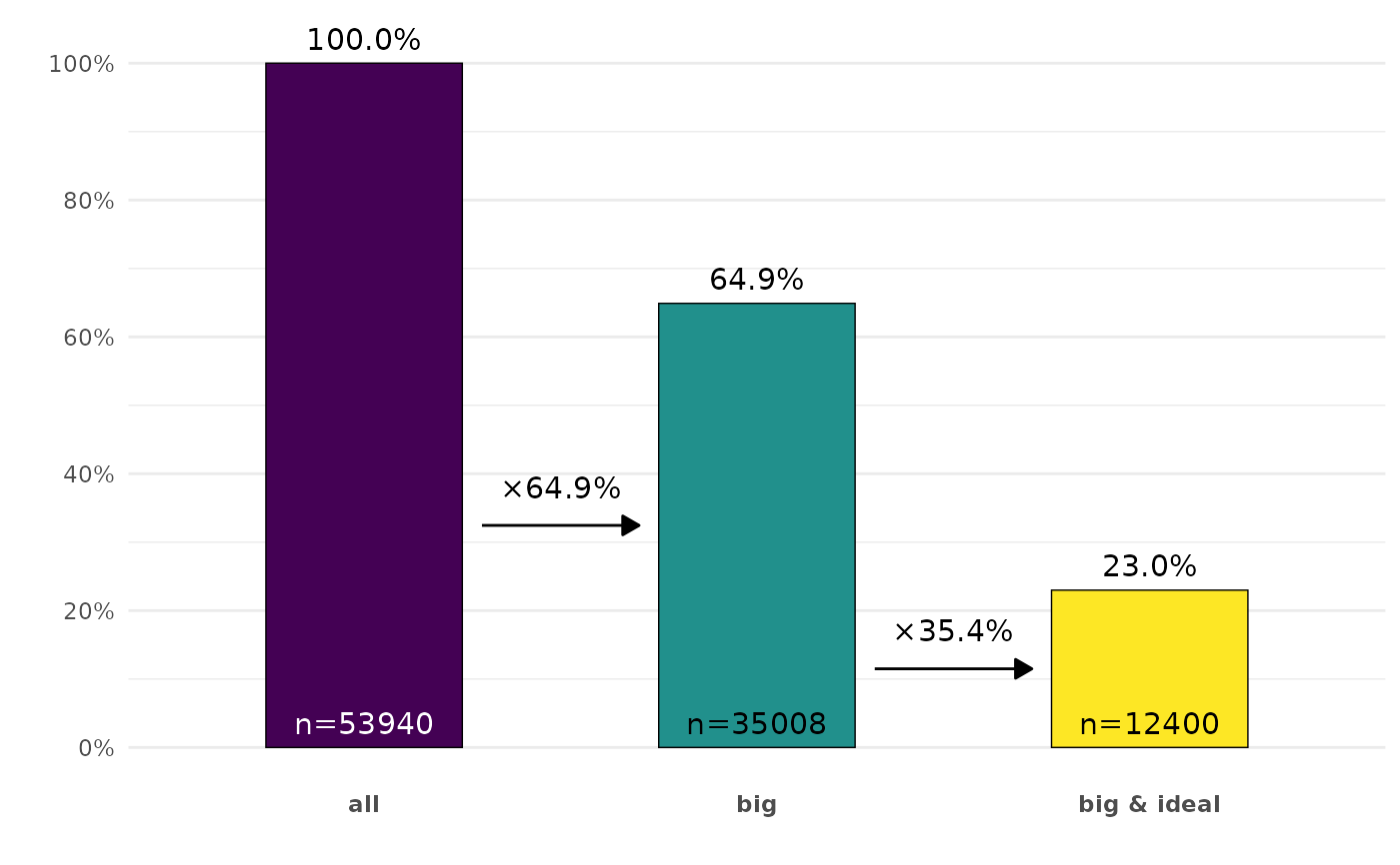 "big & ideal" = carat > .5 & cut == "Ideal"