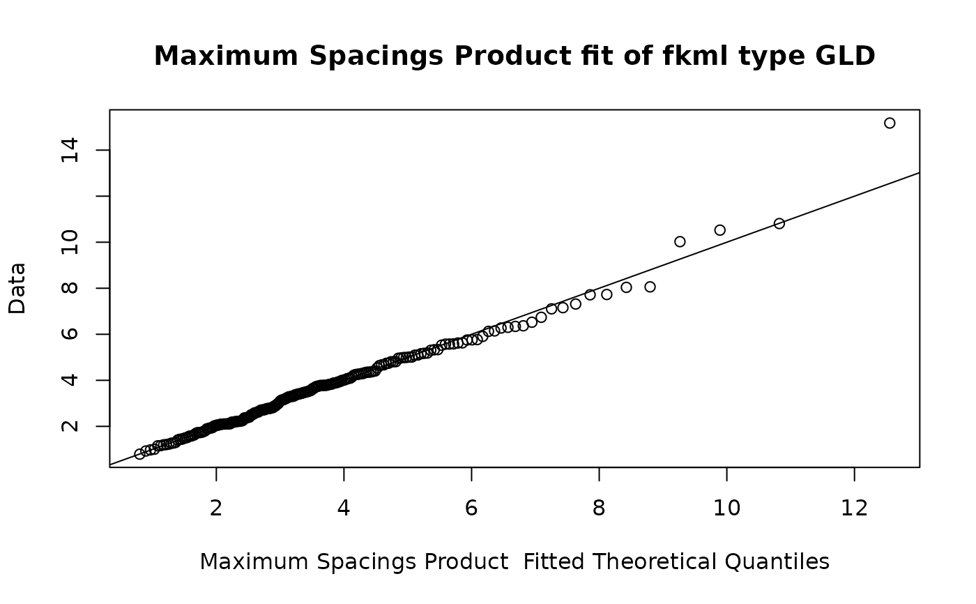 #> Generalised Lambda Distribution fkml type. Maximum Spacings Product estimate.