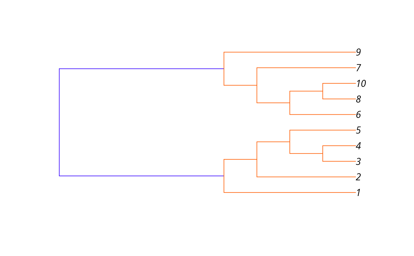 plot_dendrogram(x, mode="hclust", rect = 0, colbar = rainbow(rect),