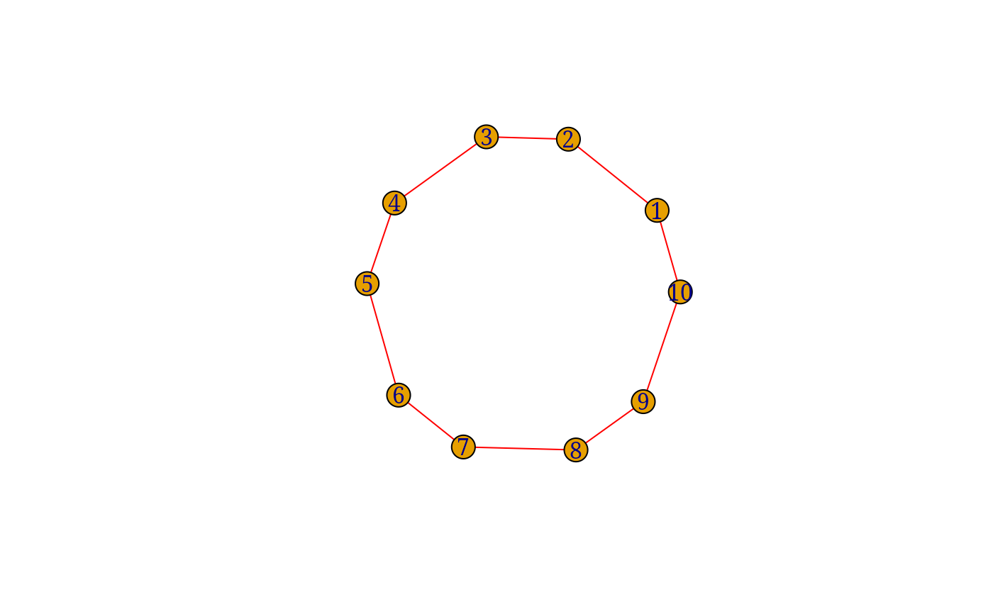 make_( ring(10), with_edge_( color = "red", weight = rep(1:2, 5) ) ) %>% plot()