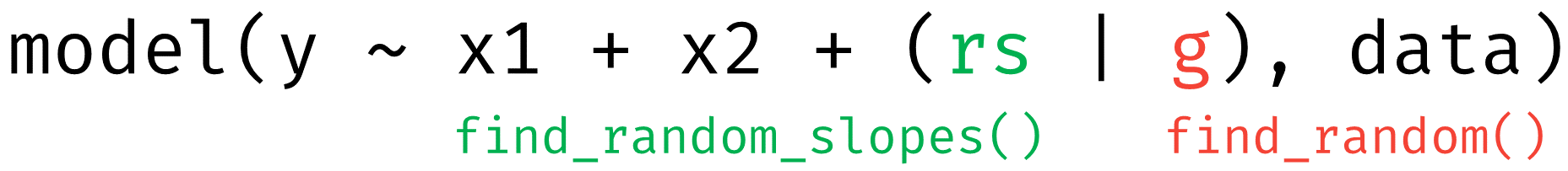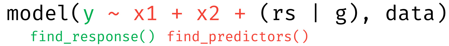 #> [1] "mysubgrp" "mygrp" "Subject"Finally, there is find_parameters(). Parameters are also