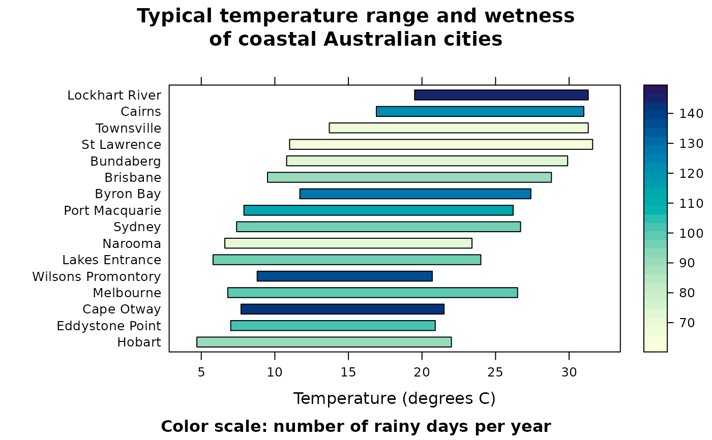 segplot(siteNames ~ WinterMinTemp + SummerMaxTemp, EastAuClimate,