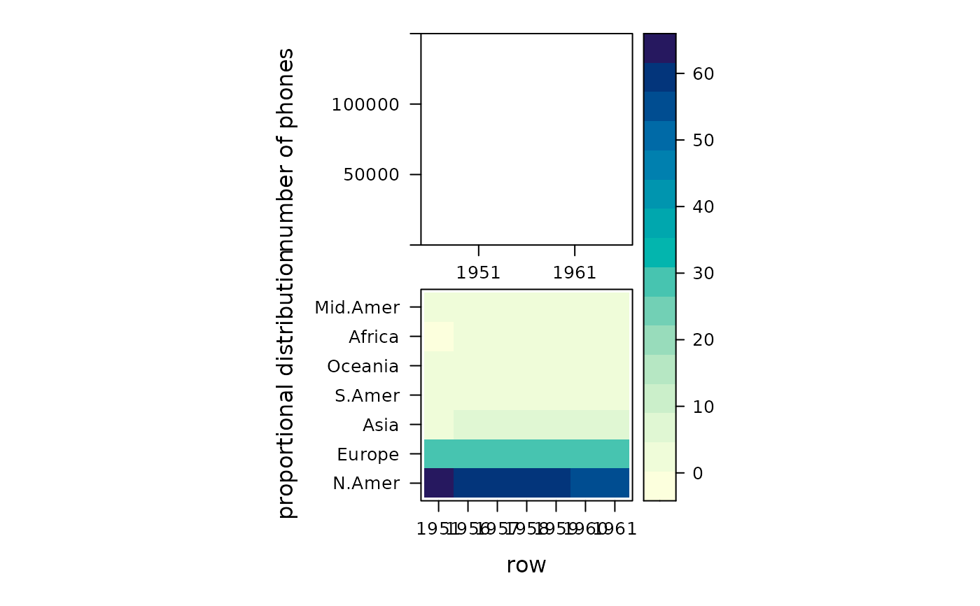 levObj <- levelplot(prop.table(WorldPhones, 1) * 100)