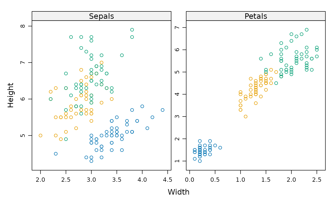 c(Sepals = sepals, Petals = petals, x.same = TRUE, y.same = TRUE)