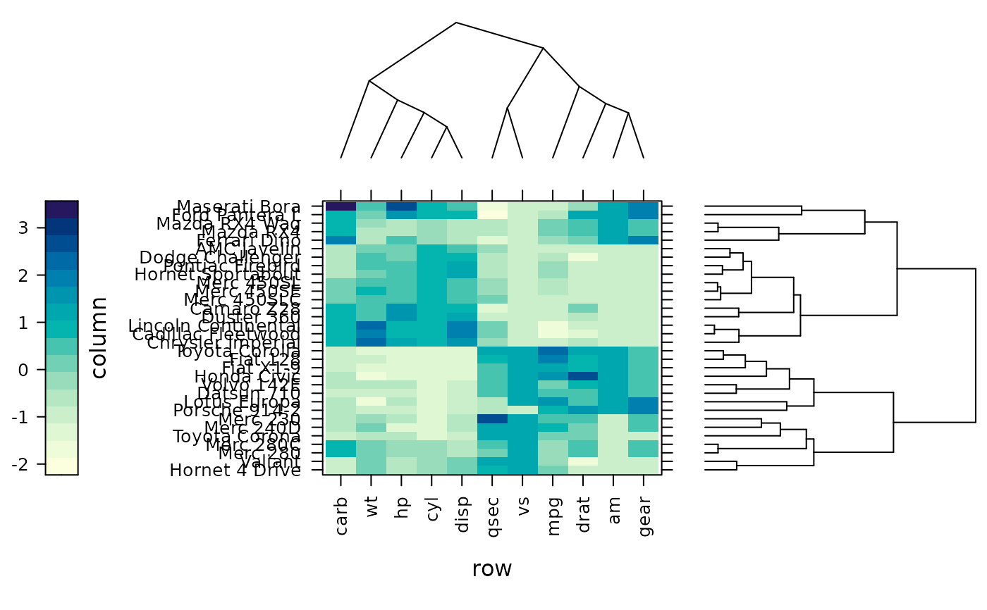 x <- t(as.matrix(scale(mtcars)))