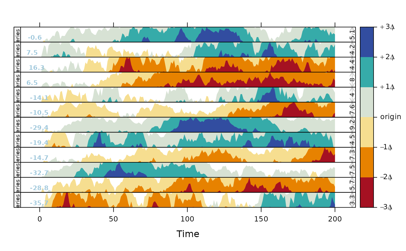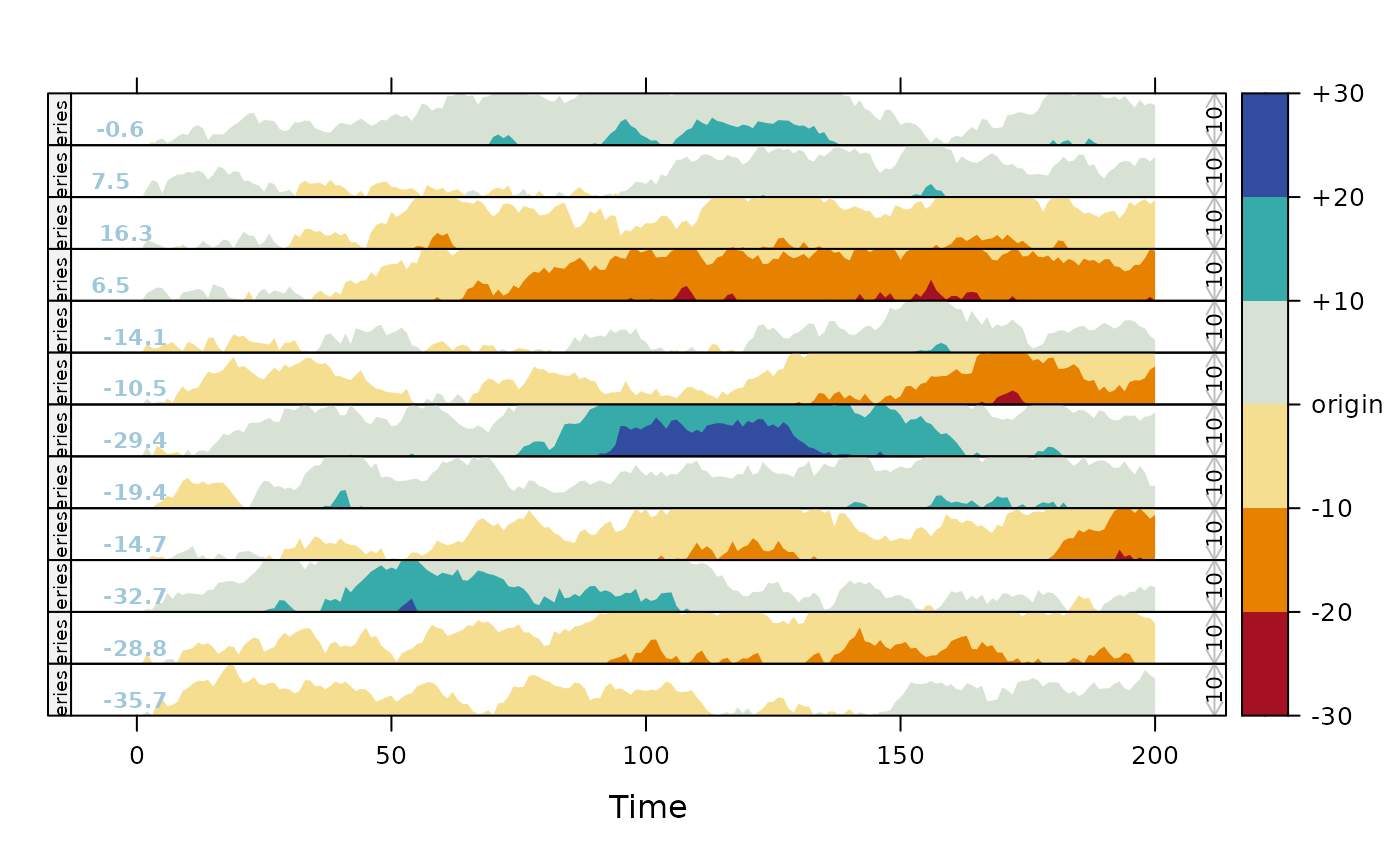 horizonplot(dat, horizonscale = 10, colorkey = TRUE,