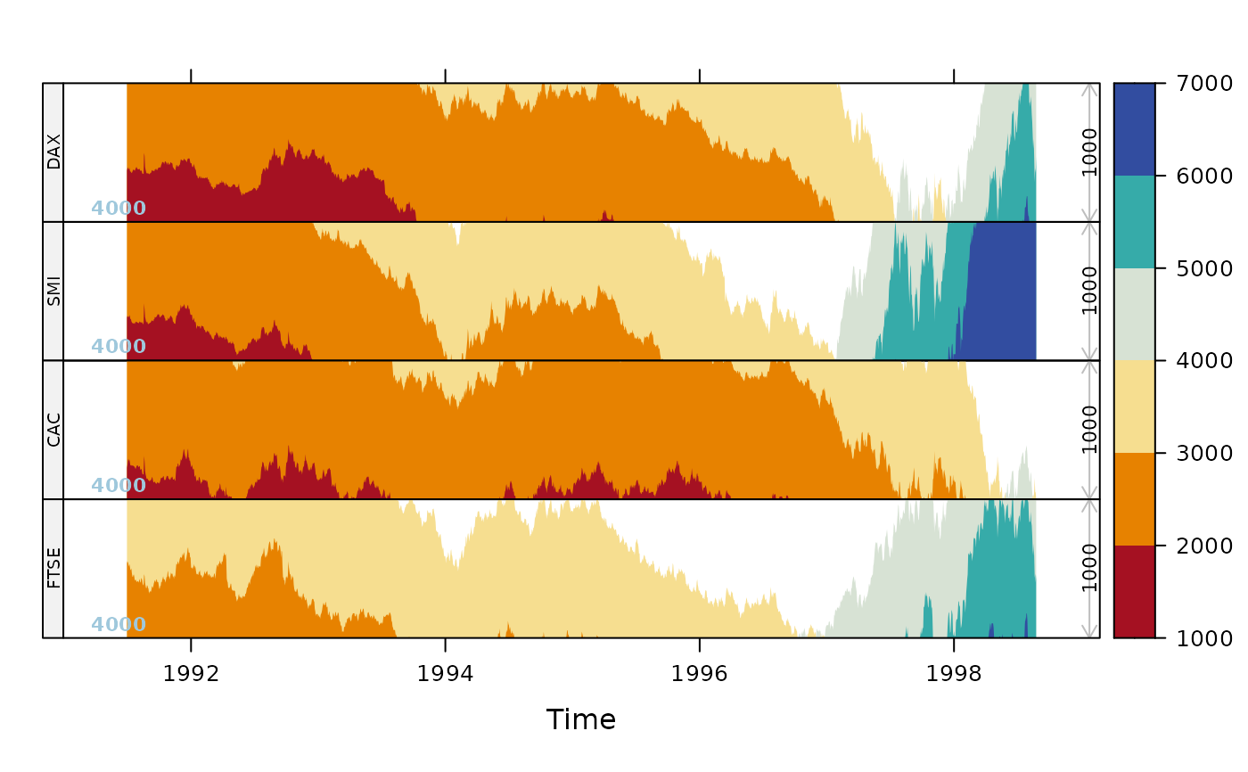 horizonplot(EuStockMarkets, colorkey = TRUE,