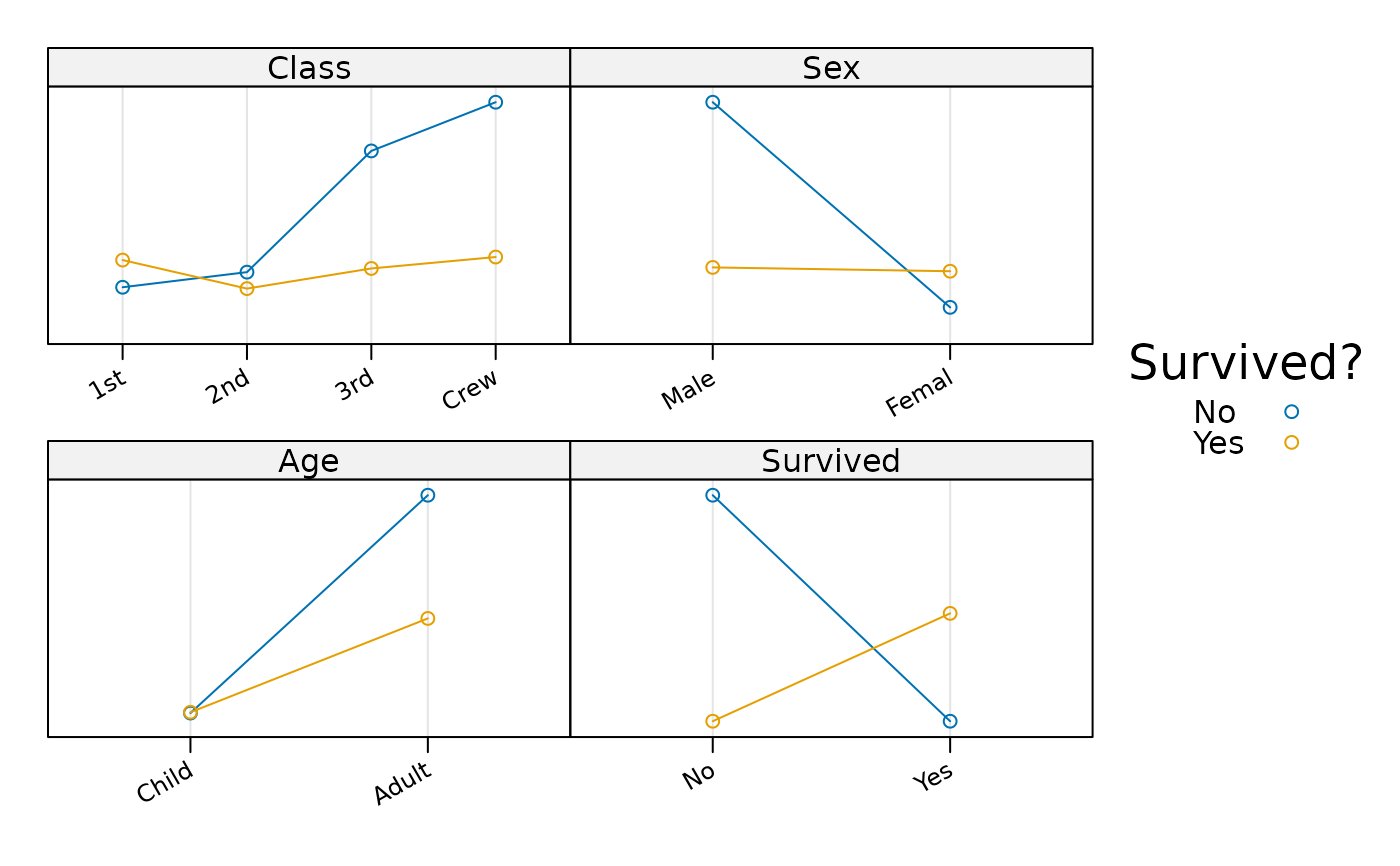 marginal.plot(~ Titanic, data = Titanic, groups = Survived,