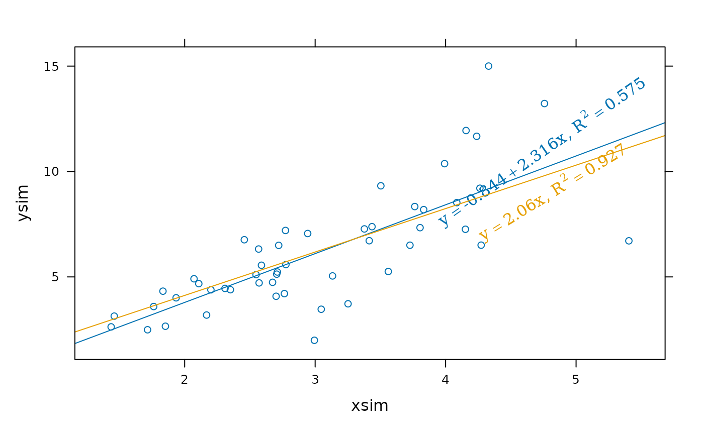 layer(panel.ablineq(lm(y ~ x + 0), r.sq = TRUE, rot = TRUE,