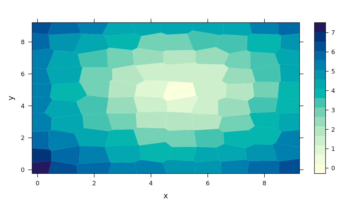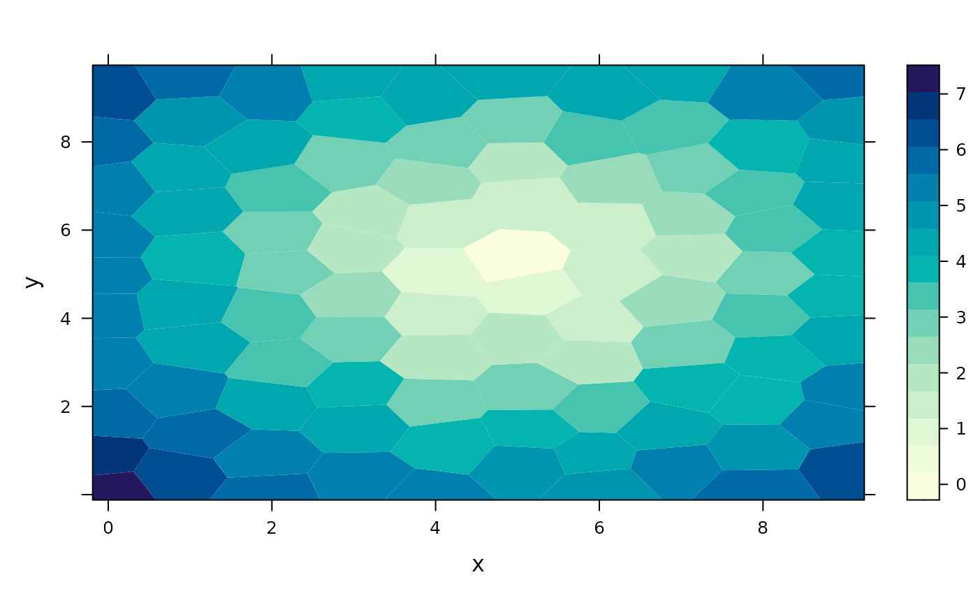 levelplot(z ~ x * y, xyz, panel = panel.voronoi, points = FALSE)
