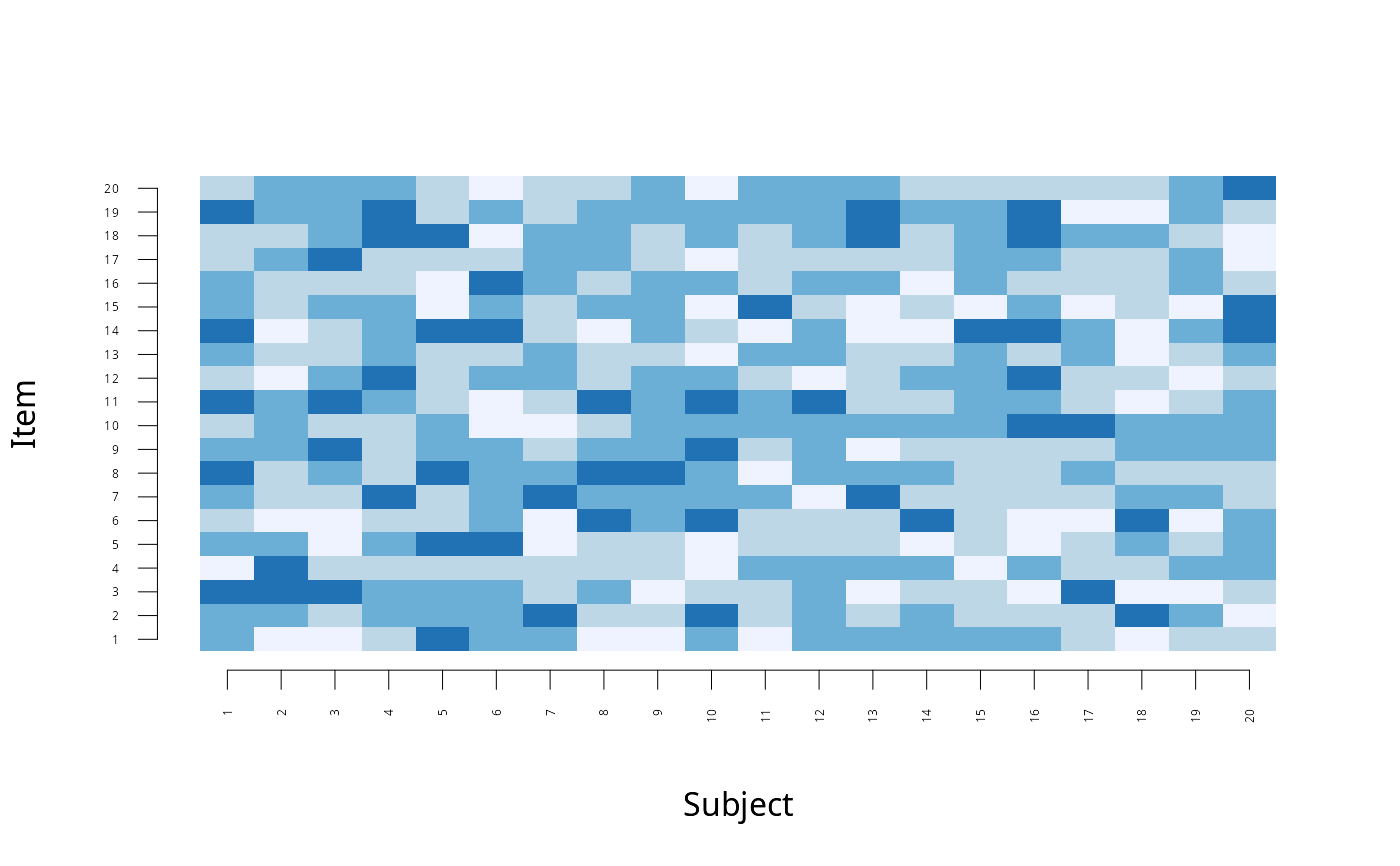 X <- matrix(rbinom(400,3,0.5),20)