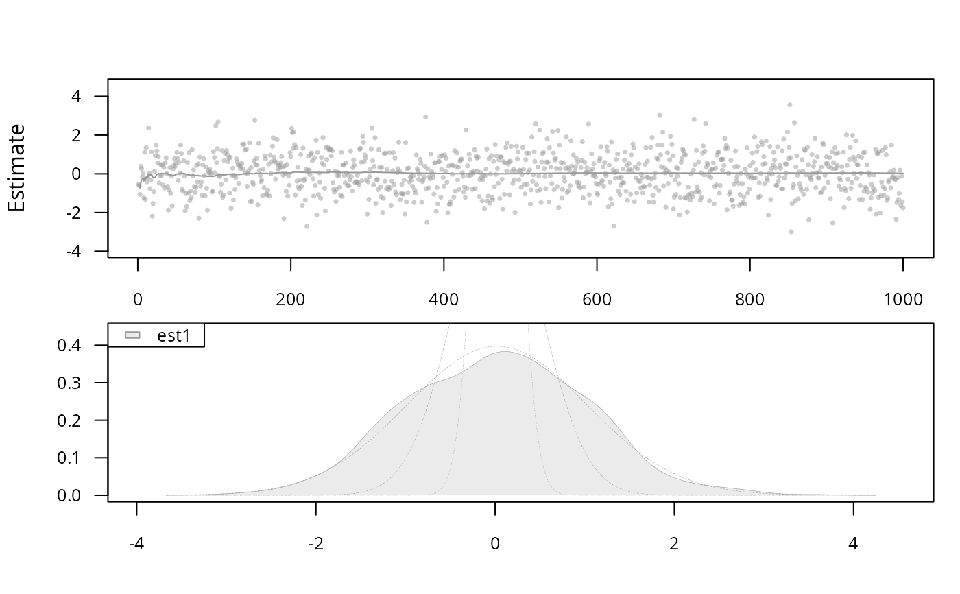 val <- cbind(est1=rnorm(n,sd=1),est2=rnorm(n,sd=0.2),est3=rnorm(n,1,sd=0.5),