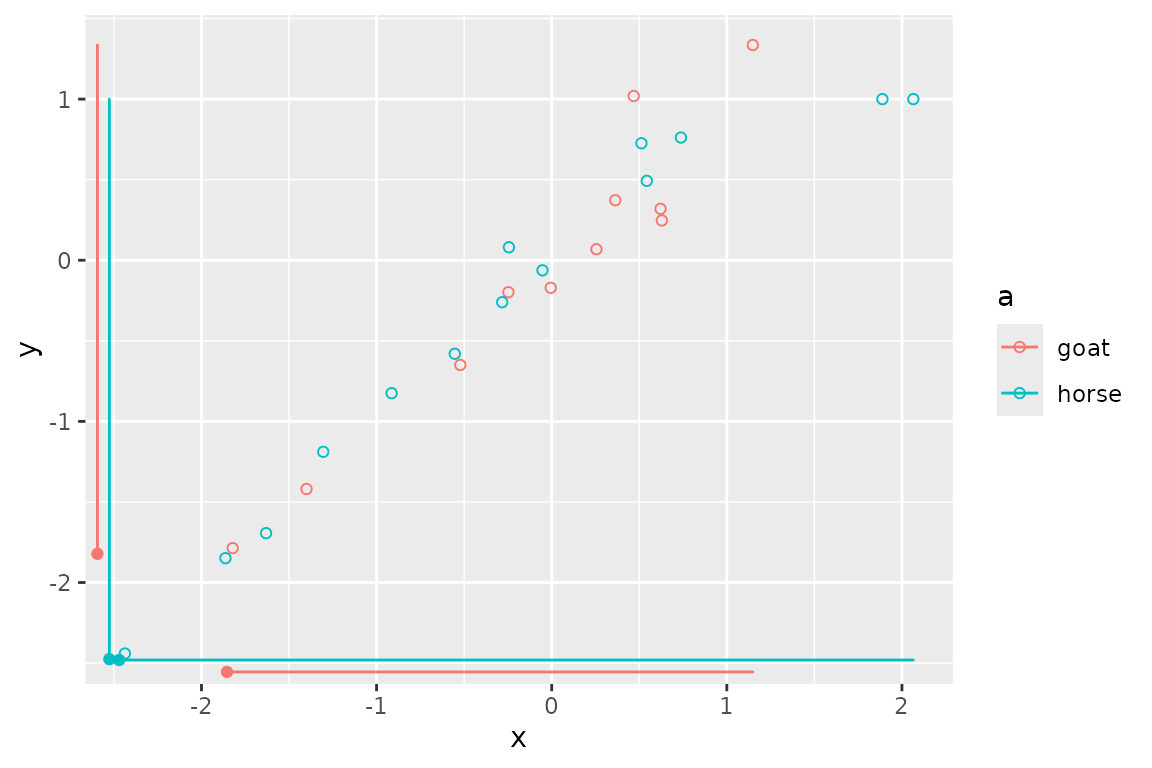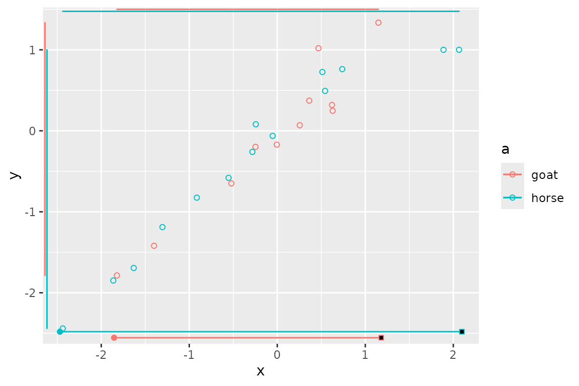 In this vignette, we will demonstrate the two geoms: geom_pointpath and geom_siderange.
