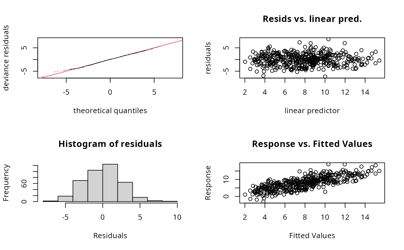 #> y ~ s(x0, k = 6) + s(x1, k = 6) + s(x2, k = 6) + s(x3, k = 6)