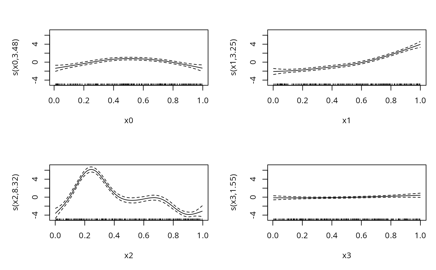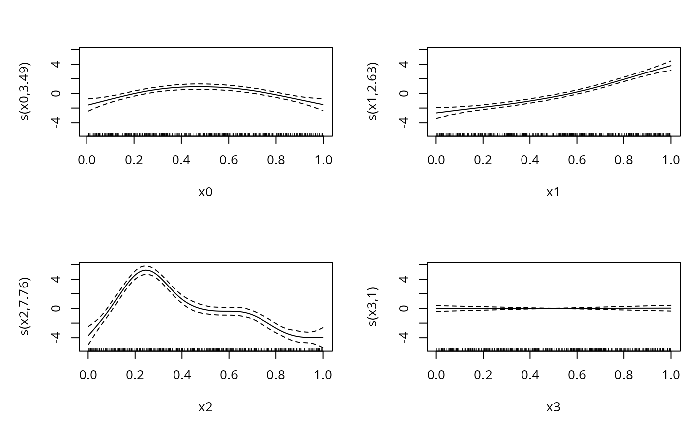 b <- gam(yi~s(x0)+s(x1)+s(x2)+s(x3),family=cnorm,data=dat)