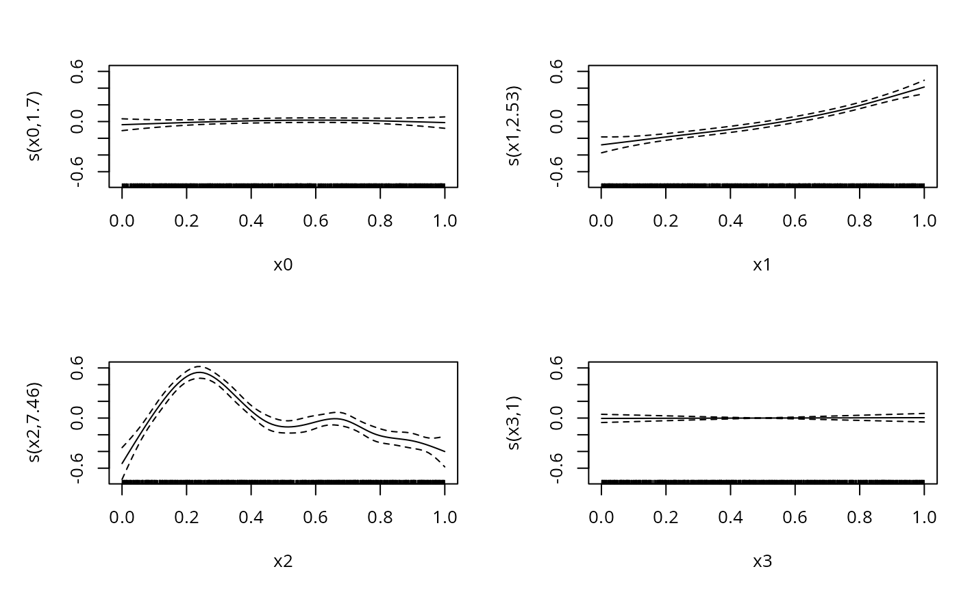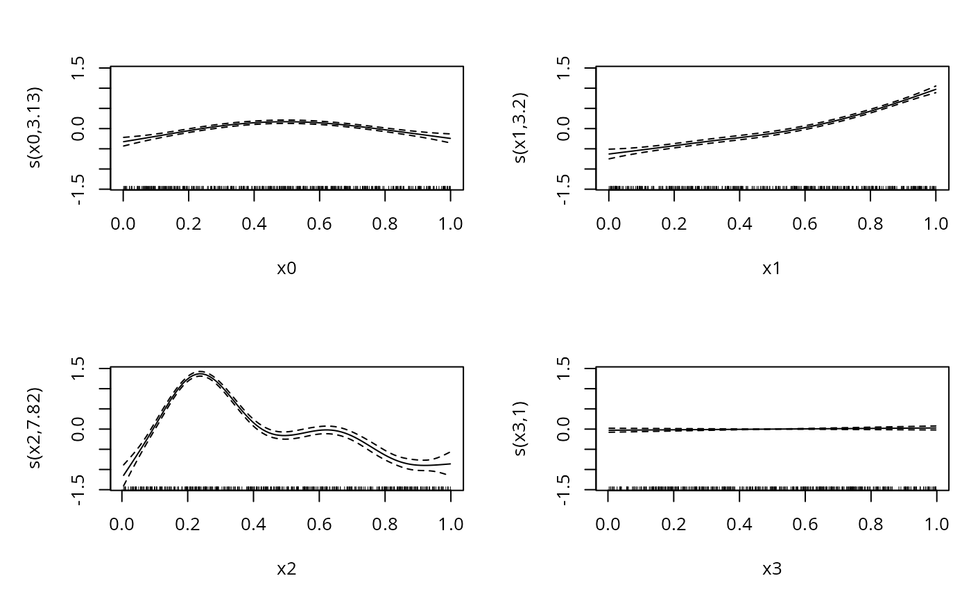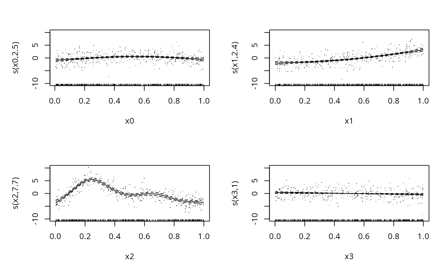 bp <- gam(y~s(x0,sp=.01)+s(x1)+s(x2)+s(x3),data=dat)