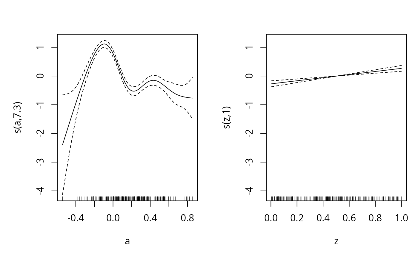 #> y ~ s(a, fx = fx, k = k) + s(z)