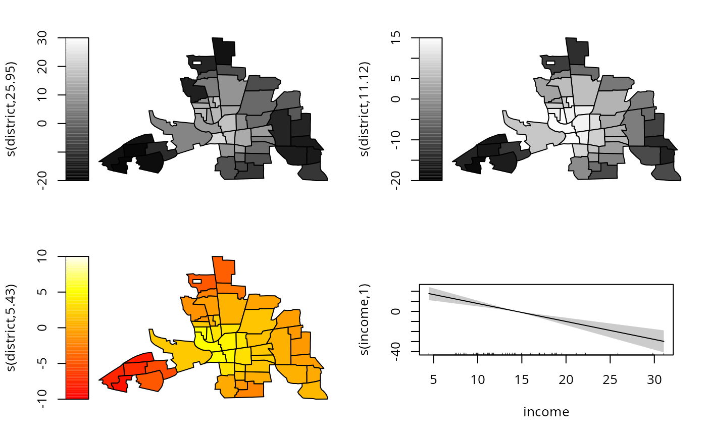 b1 <- gam(crime ~ s(district,bs="mrf",k=20,xt=list(nb=nb))+s(income),
