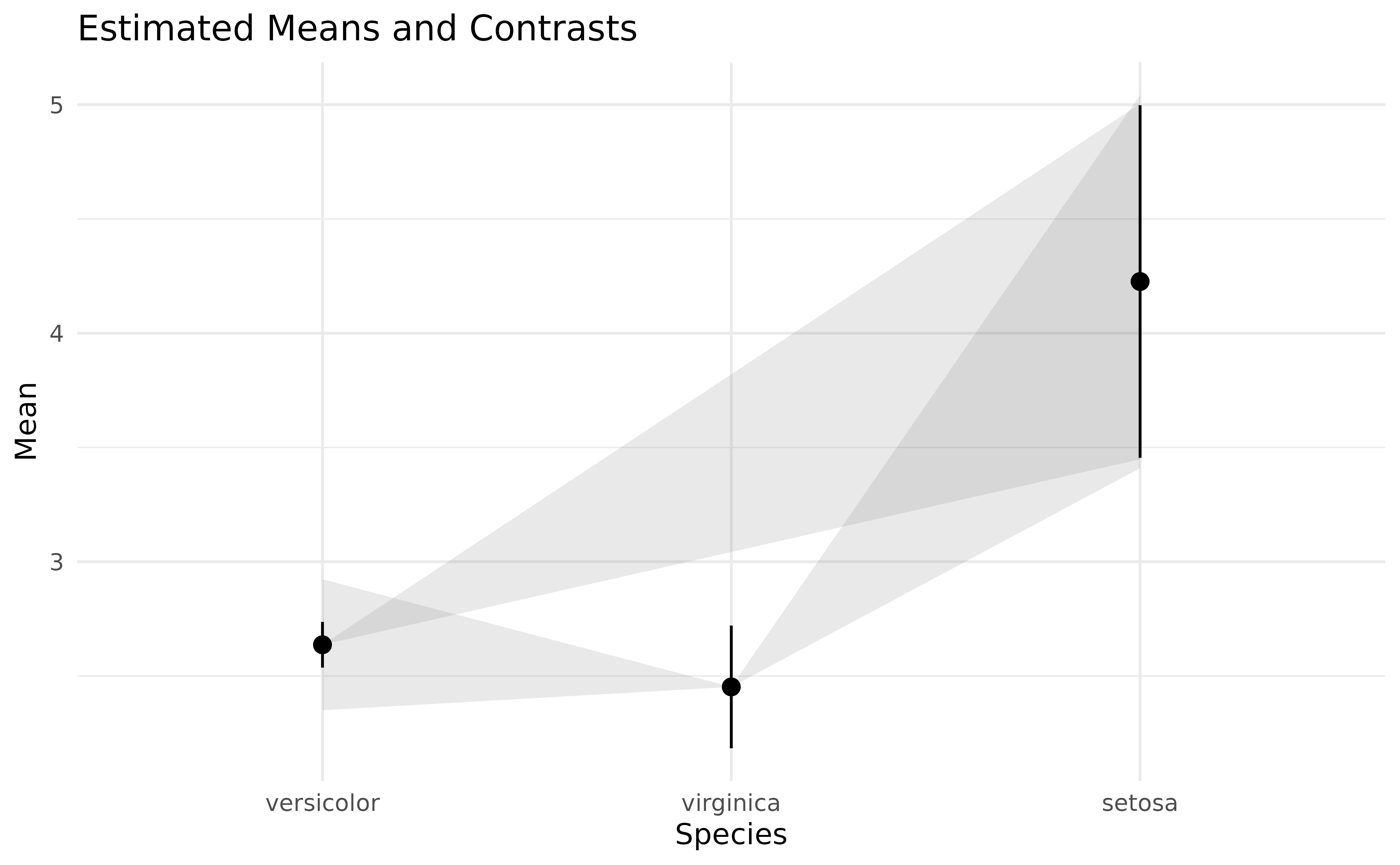 plot(contrasts, estimate_means(model, by = "Species")) +