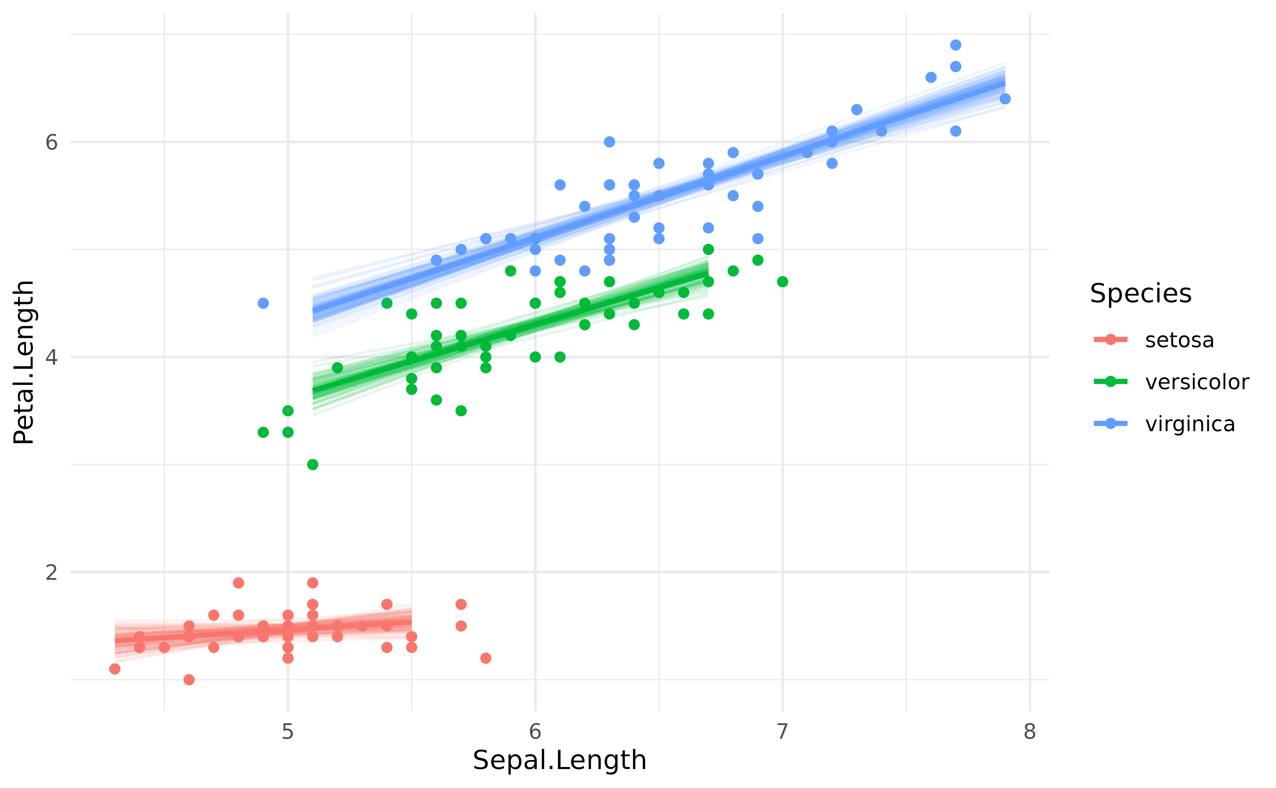 geom_line(data = predicted, aes(y = Predicted, color = Species), linewidth = 1) +