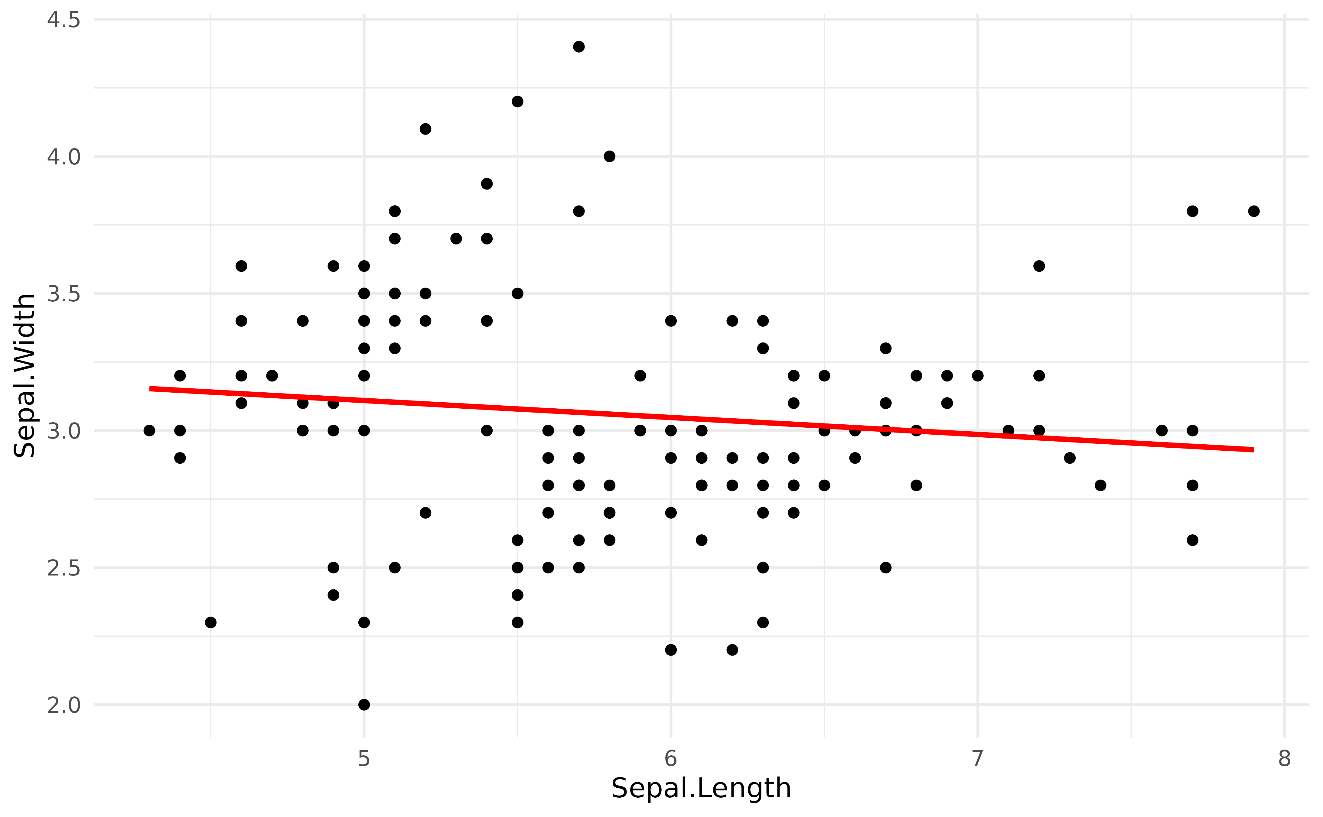 model <- lm(Sepal.Width ~ Sepal.Length, data = iris)