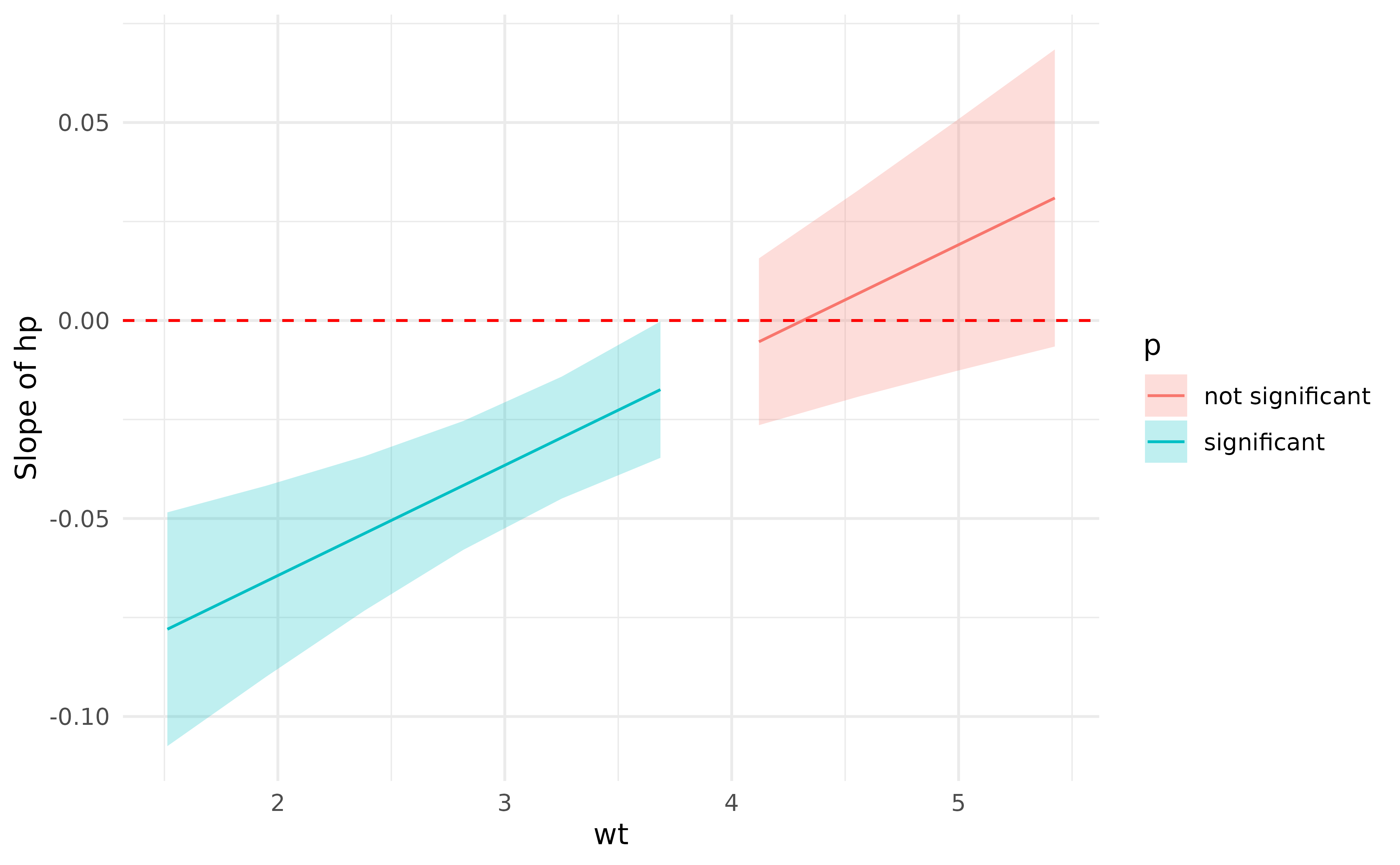 slopes <- estimate_slopes(model, trend = "hp", by = "wt")