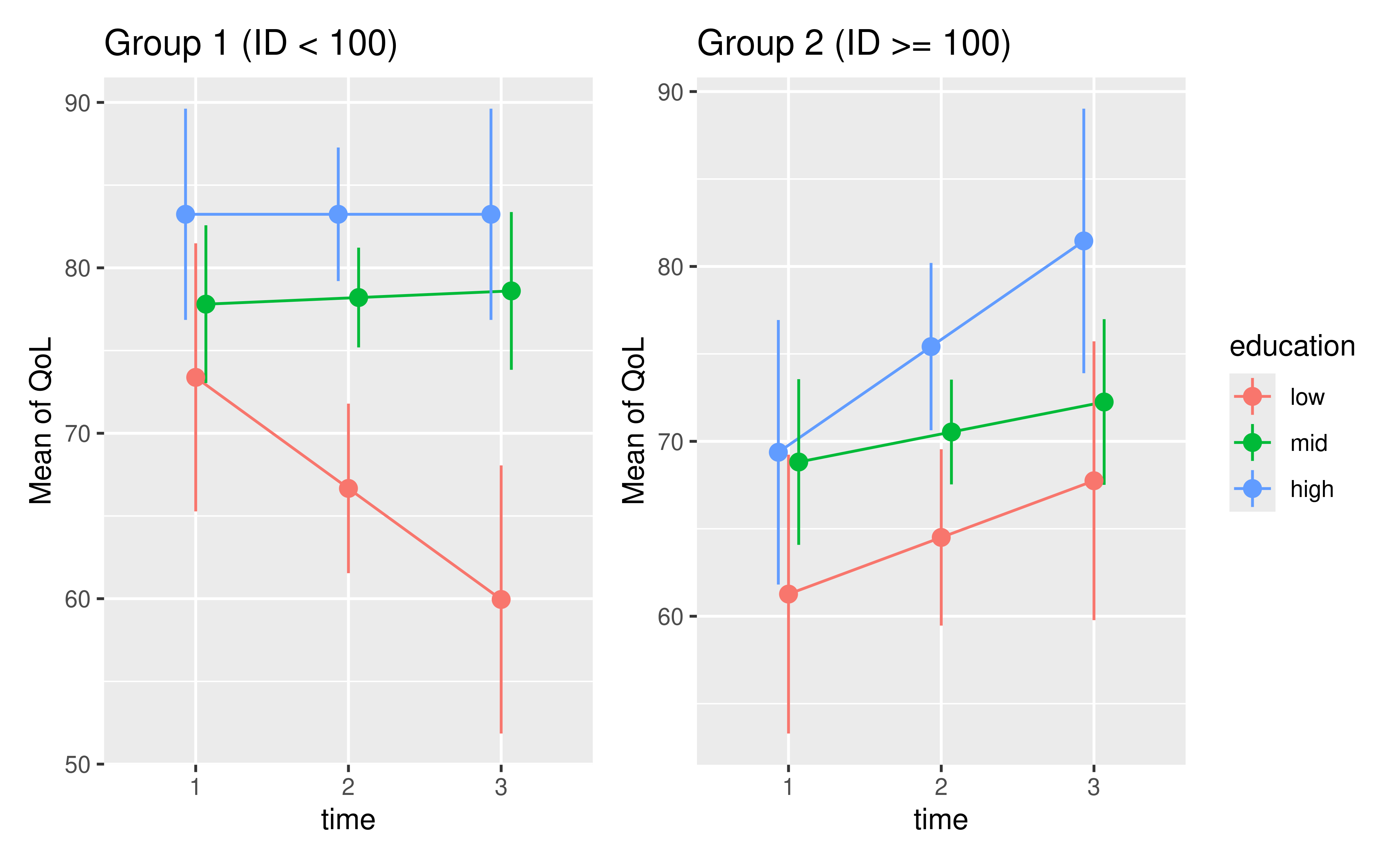 #> ID QoL time age phq4 hospital education