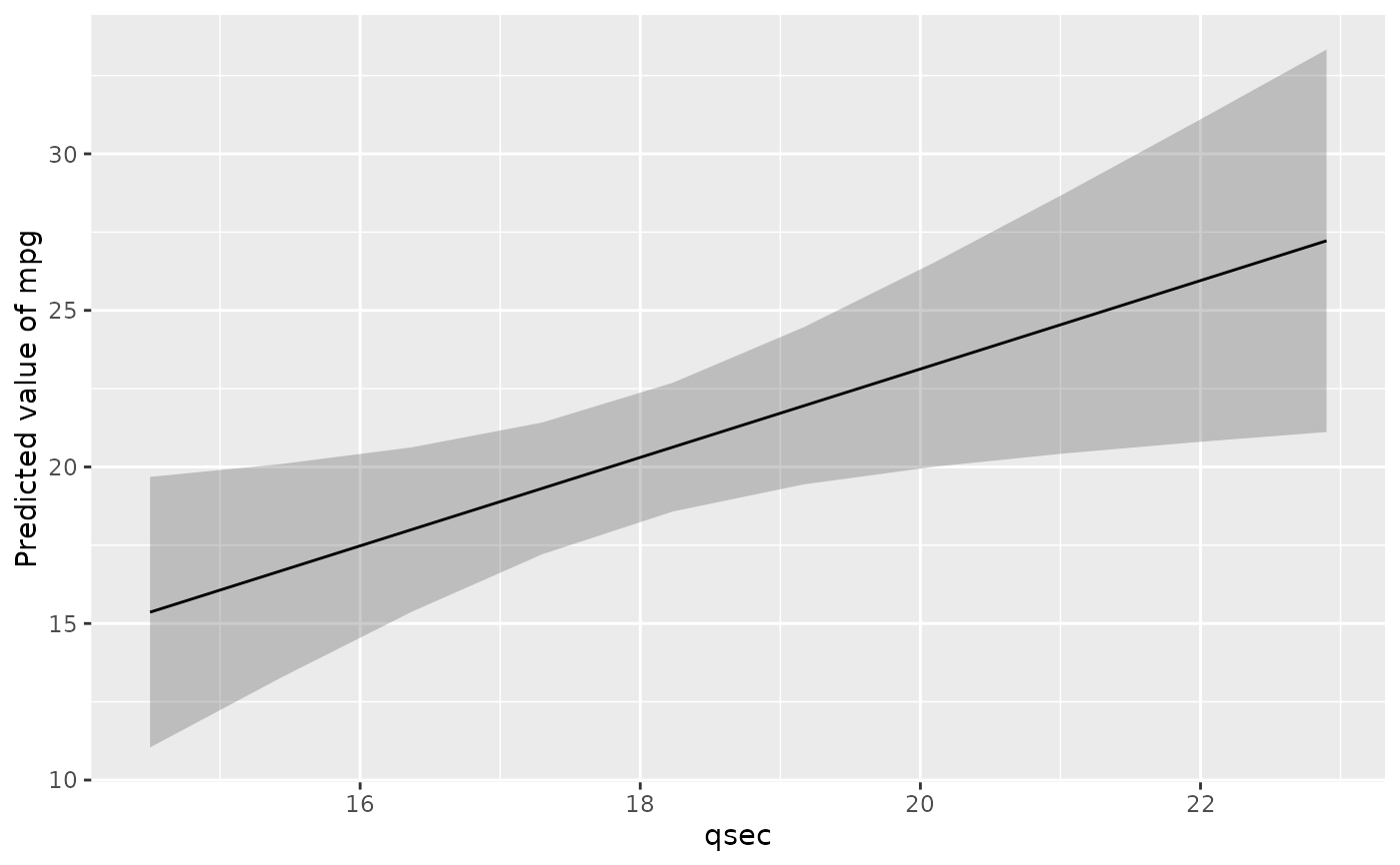 plot(estimate_relation(lm(mpg ~ qsec, data = mtcars)))