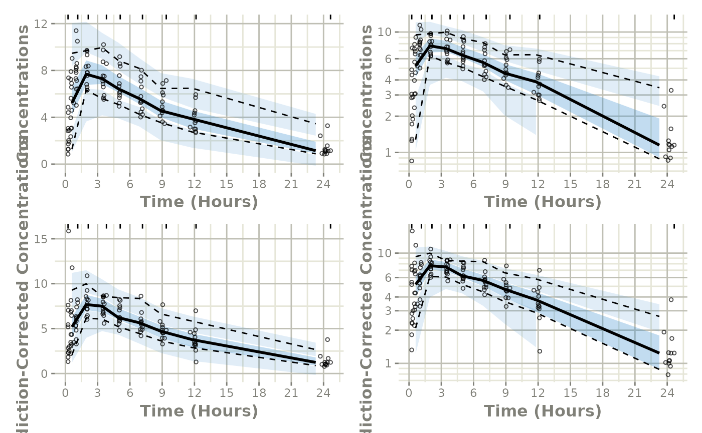 p2 <- vpcPlot(fit, pred_corr = TRUE, show=list(obs_dv=TRUE))