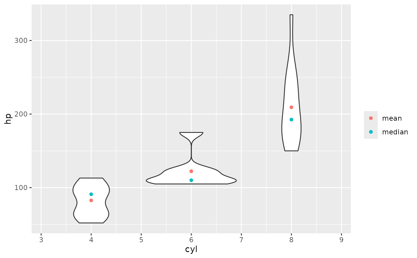 gf_violin(hp ~ cyl, data = mtcars, group = ~ cyl) |>