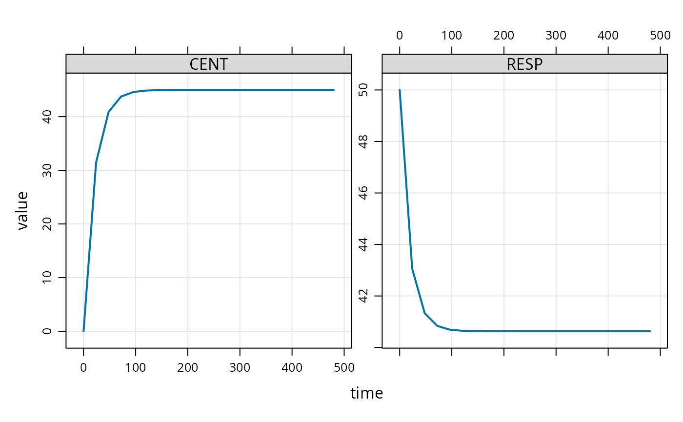 mod <- update(mod, delta = 24, end = 24*20, outvars = "CENT, RESP")And simulate that out