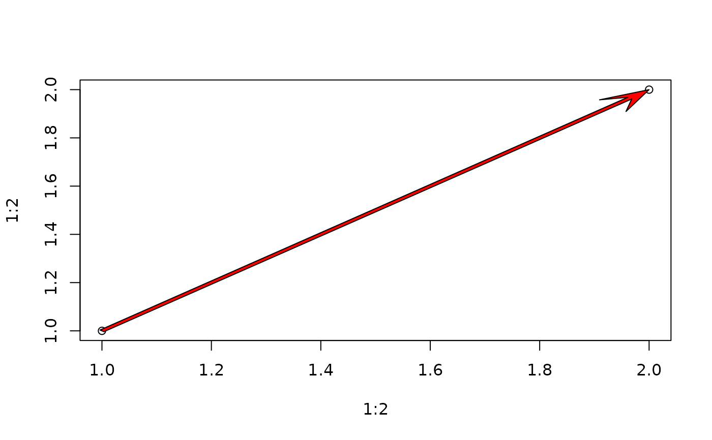 network.arrow(1,1,2,2,width=0.01,col="red",border="black")