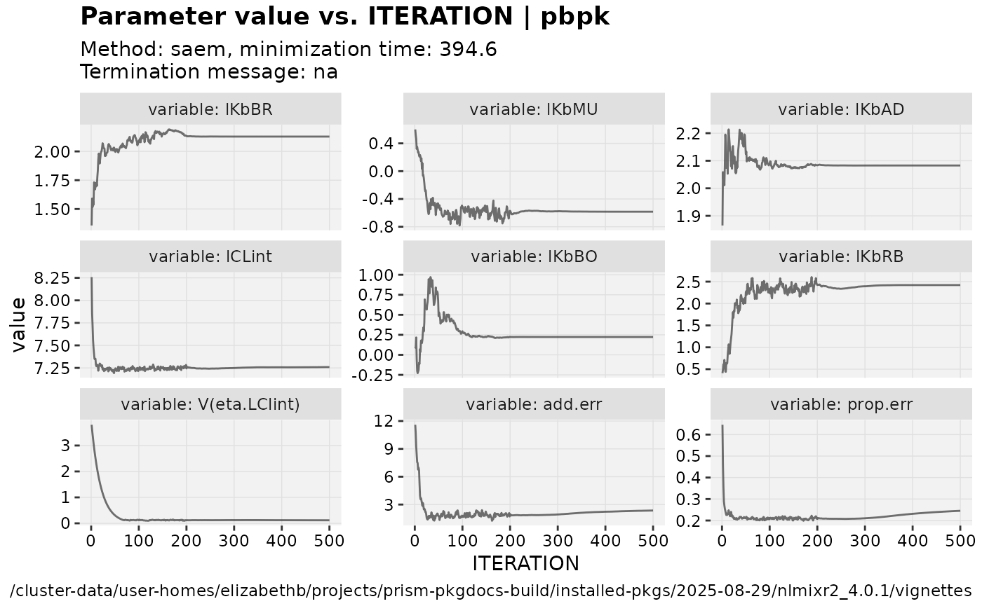 fit.addProp.S <- nlmixr(pbpk, dat, est="saem", control=list(print=0),