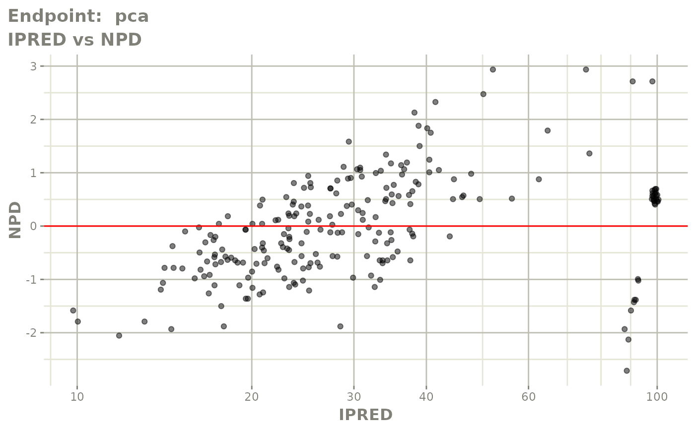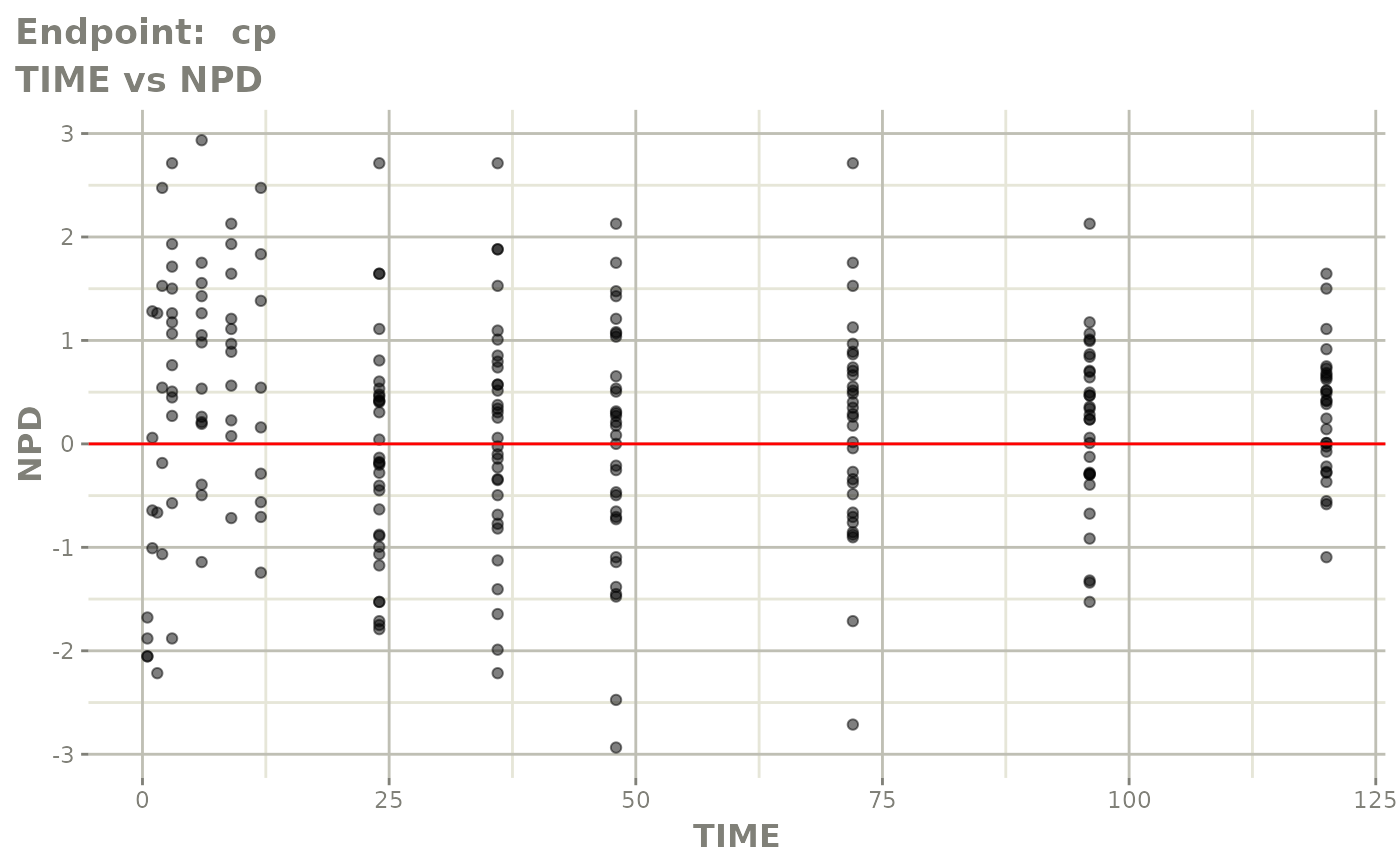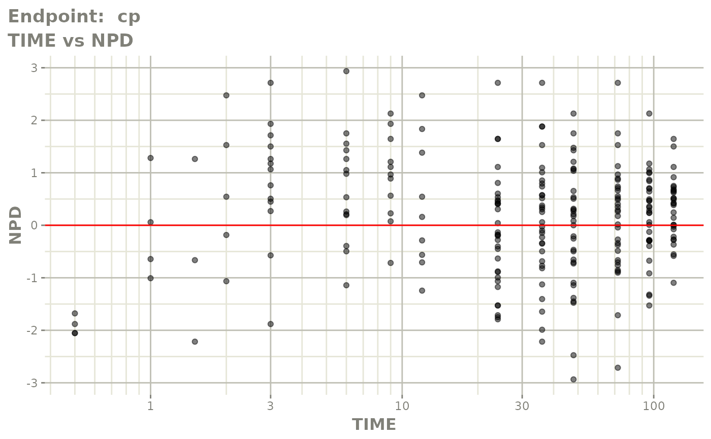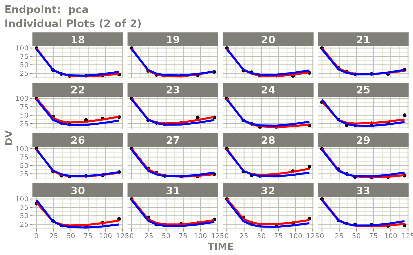 v1f <- vpcPlot(fit.TOF, show=list(obs_dv=TRUE), scales="free_y") +