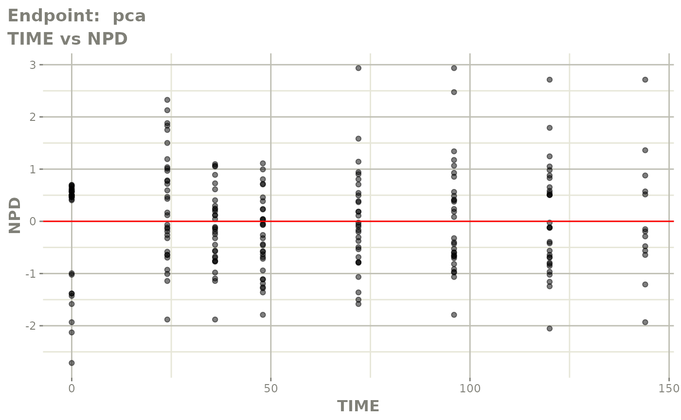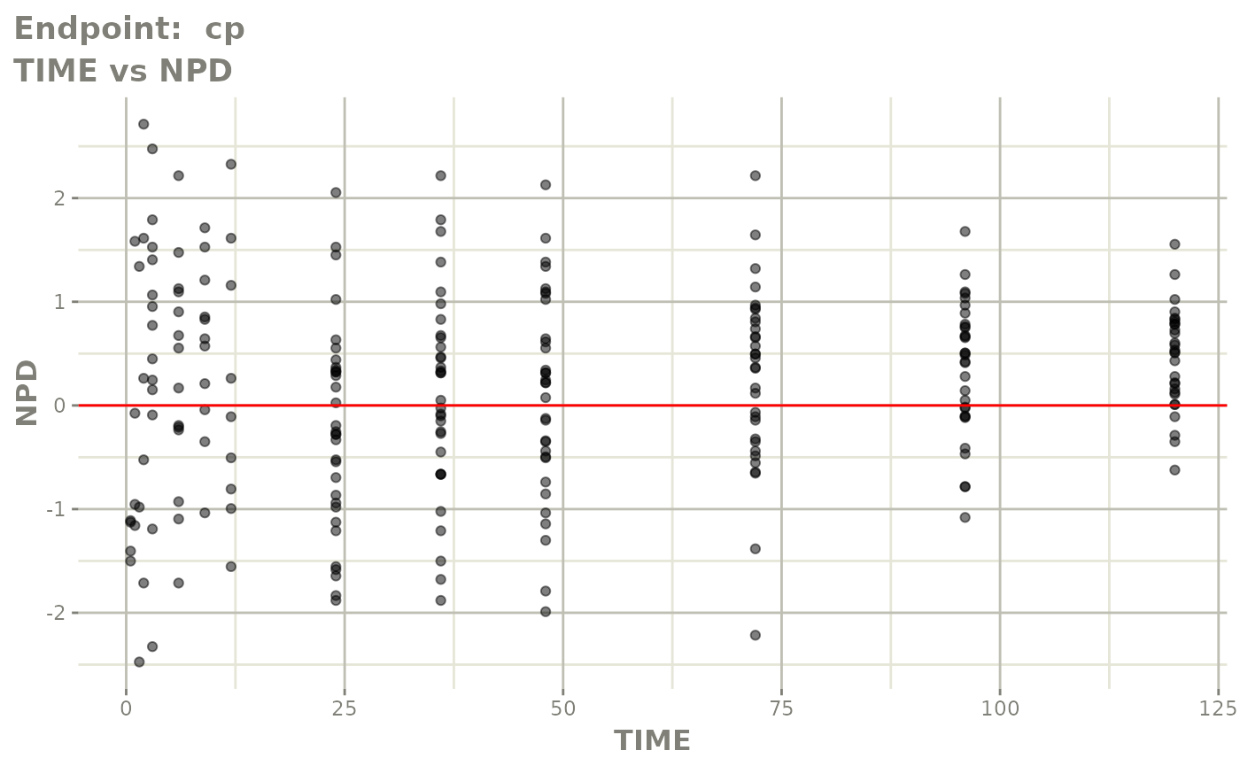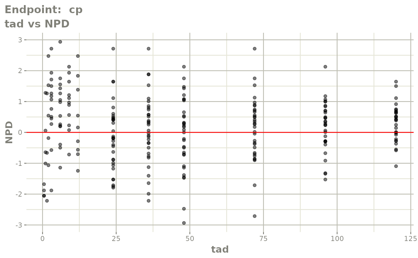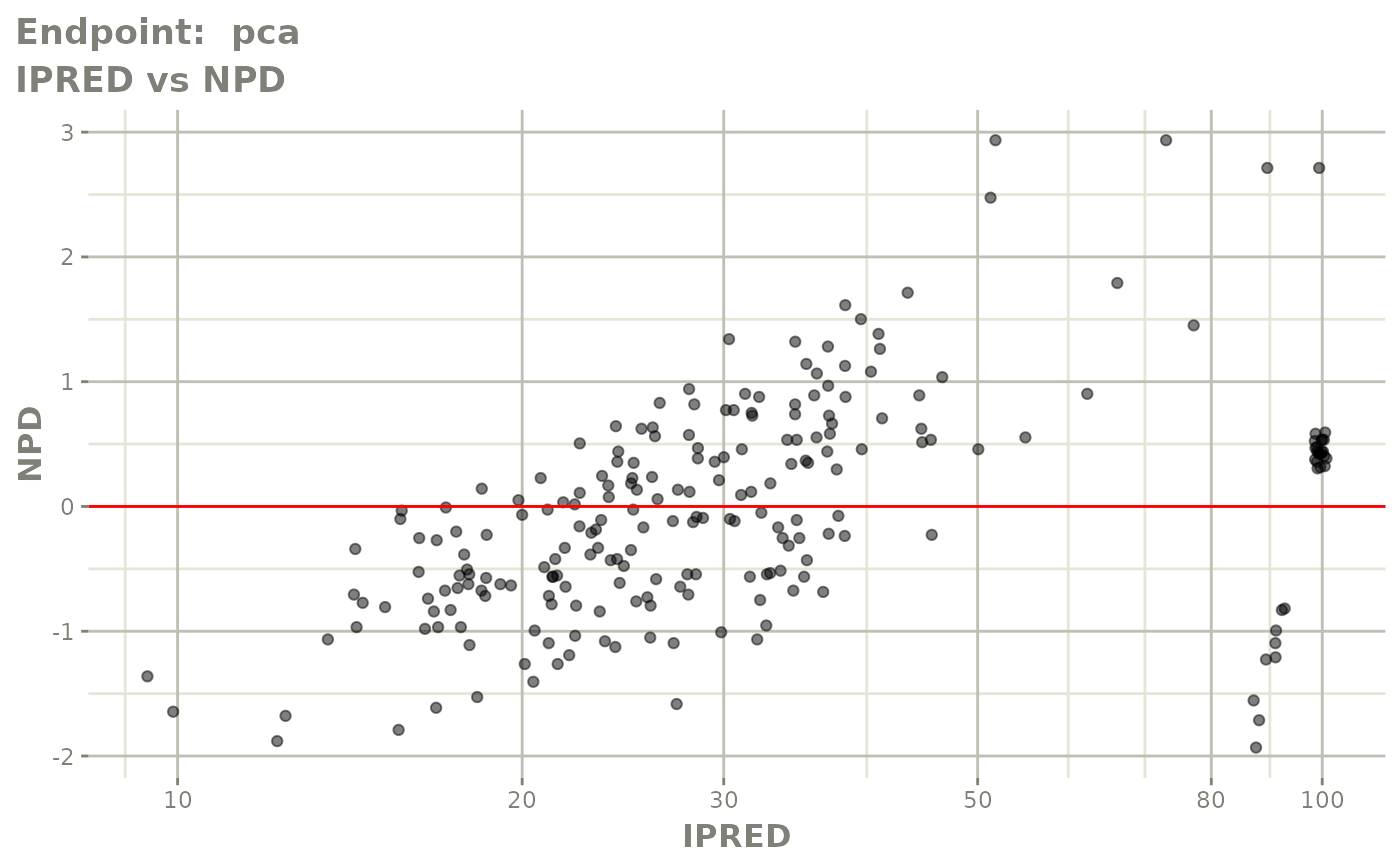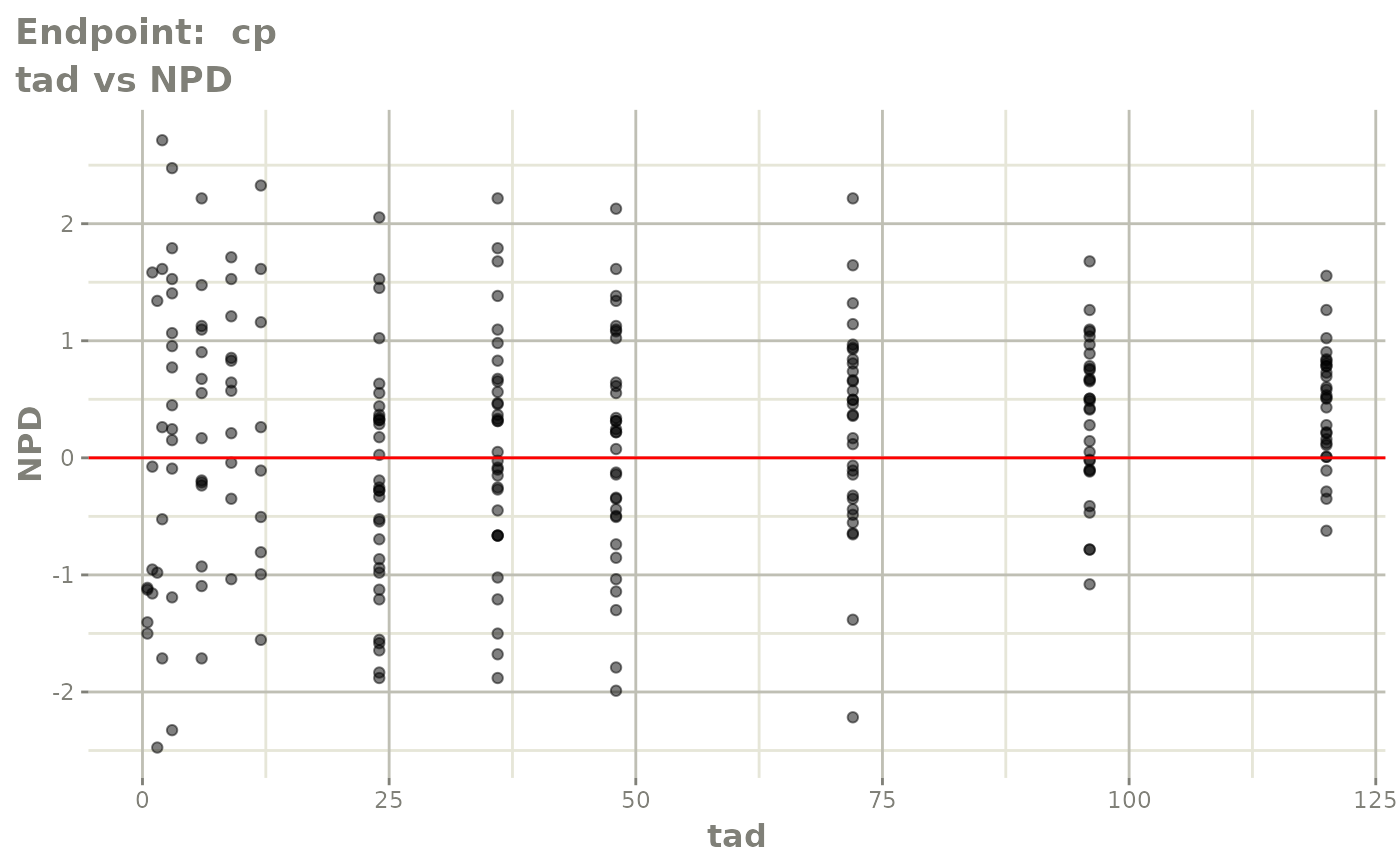 v1f <- vpcPlot(fit.TOF, show=list(obs_dv=TRUE), scales="free_y") +